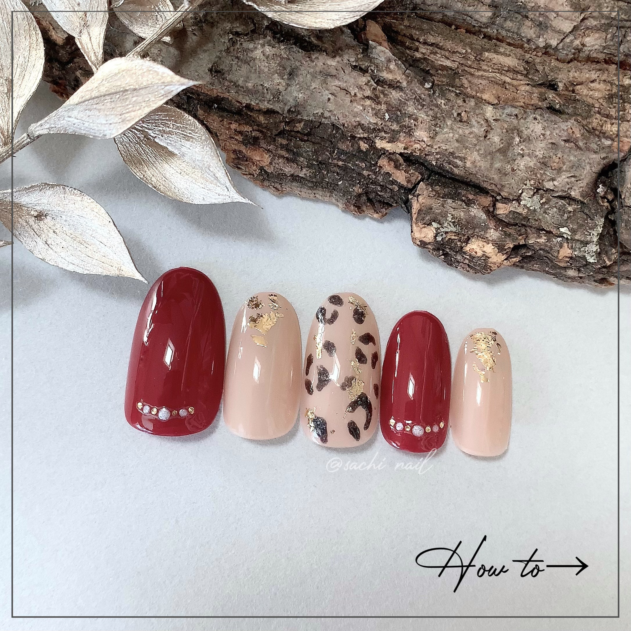 ワンカラーでも指ごとに色を変えるだけでオシャレに見えます💕 画像のようにゴールドラインとストーンを少し足すだけで華やかさがアップ🥰 何度かご紹介したことのあるスポンジで作るグラデーションです✨ スポンジを使うことで境目が綺麗に馴染んでくれます💕 アルミホイルの上でブラウンとトップコートを1:1くらいで混ぜたものを、トップコートのハケに取って3箇所に塗るだけ👌 事前に混ぜたものを塗ることで、爪の上でぼかすより簡単に出来ます💕 ベースカラーが乾く前に点置きしてぼかすことで綺麗にぼかせます✨ スピードが大事なので、使うポリッシュのキャップは全て開けておきましょう😊 天然石のラインはガタガタの方がより天然石っぽく見えるので、ラインを描くのが苦手な方でも大丈夫🙆♀️ 難しそうに見えて、やってみると意外と簡単に出来ます♡