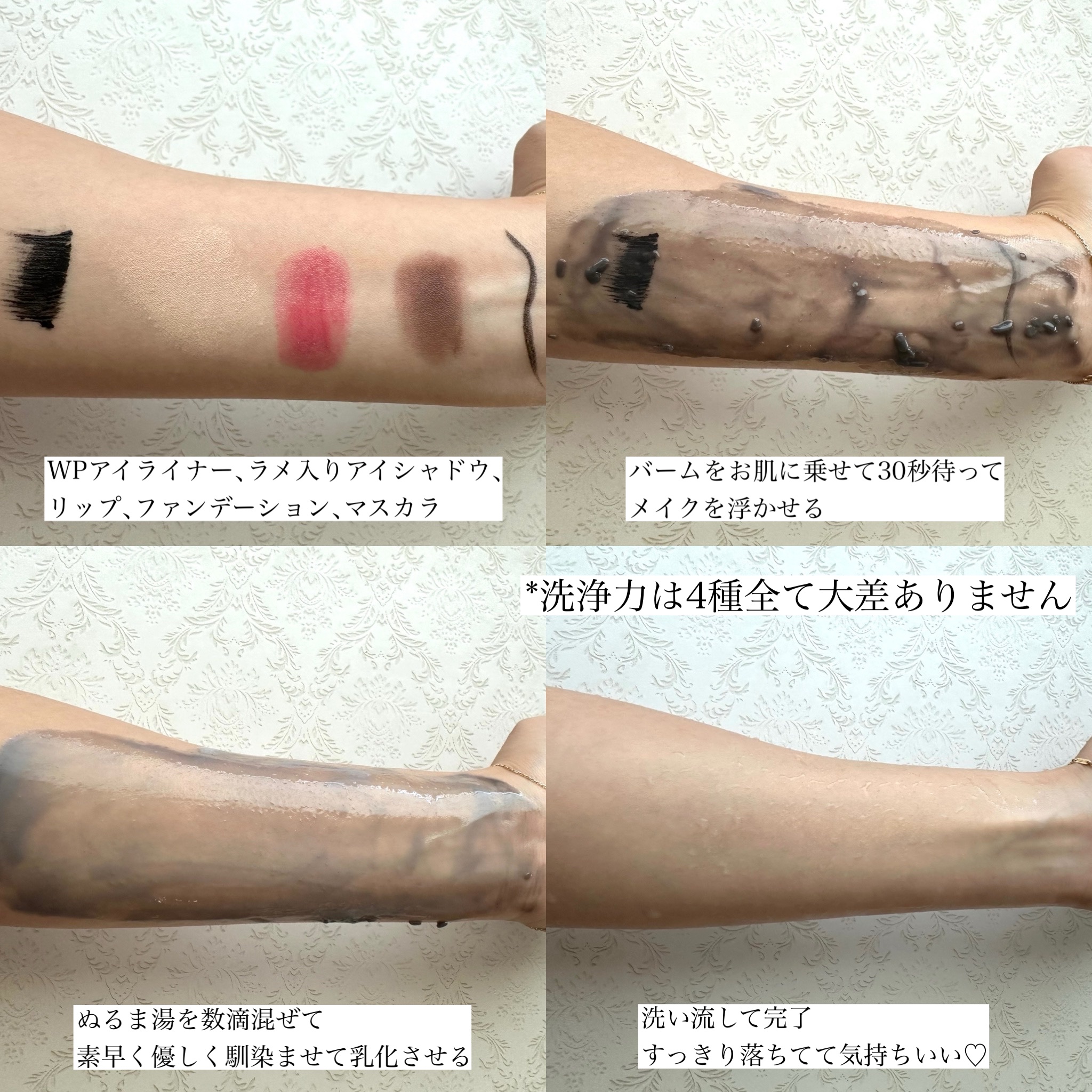 | バームを肌に乗せて撫でるとすぐに オイルみたいにみずみずしく変化✨ | 詳細を見る | ||