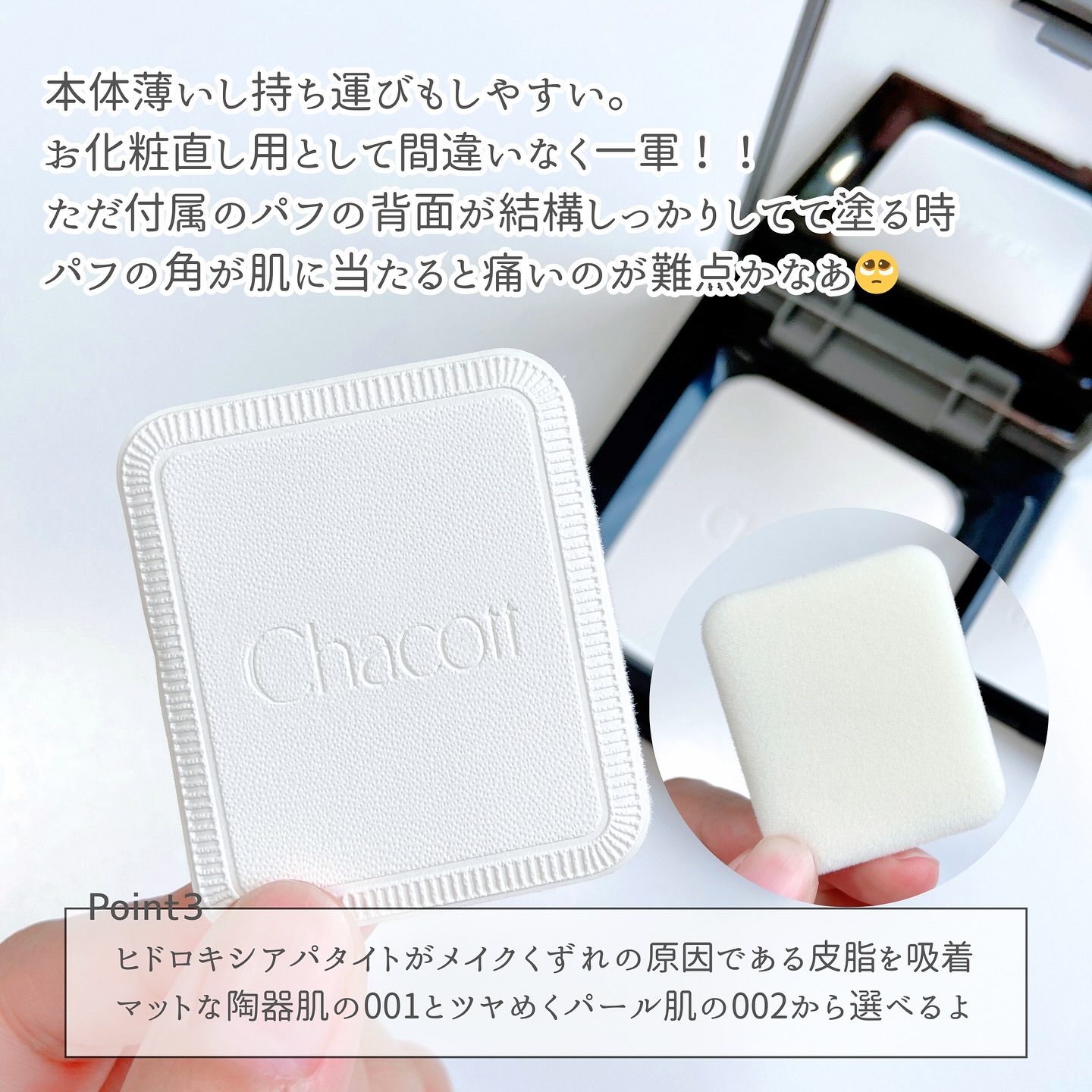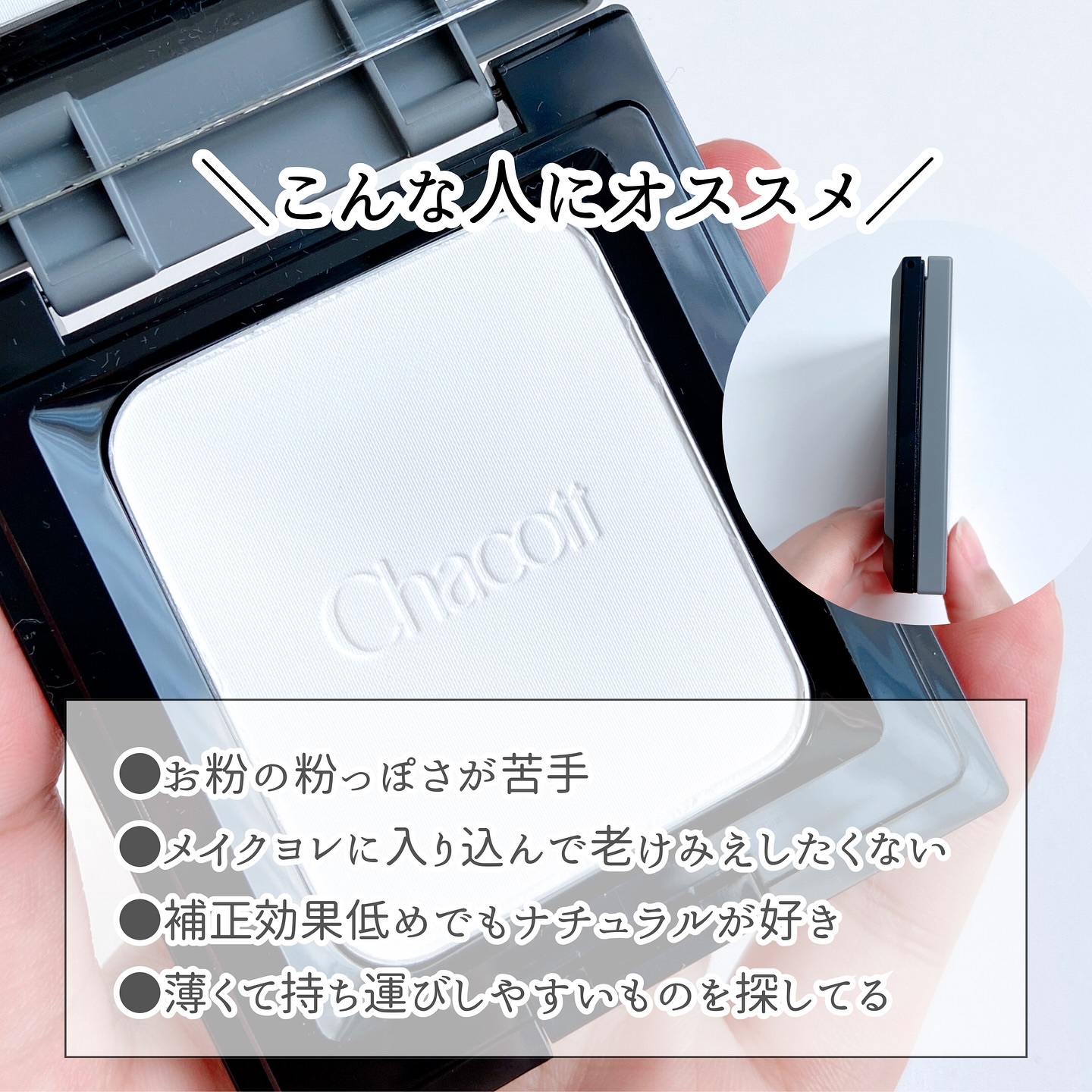 - チャコットを代表するフィニッシングパウダーから、お客さまのご要望が多かった「プレストタイプ」が新登場。 フィニッシングパウダーのくずれにくさ、テカリにくさのなど機能性はそのままに仕上がりにもこだわった「美肌仕上げ」のプレストパウダーとなっています。 パフの三分の一程度にパウダーをとり、気になる部分にのせます。 肌表面をすべらせるように馴染ませると磨かれたようななめらかな仕上がり*に。 使い方 パフの二分の一程度にパウダーをとり、気になる部分にのせます。 肌表面をすべらせるように馴染ませると磨かれたようななめらかな仕上がり*に。 *メイクアップ効果による