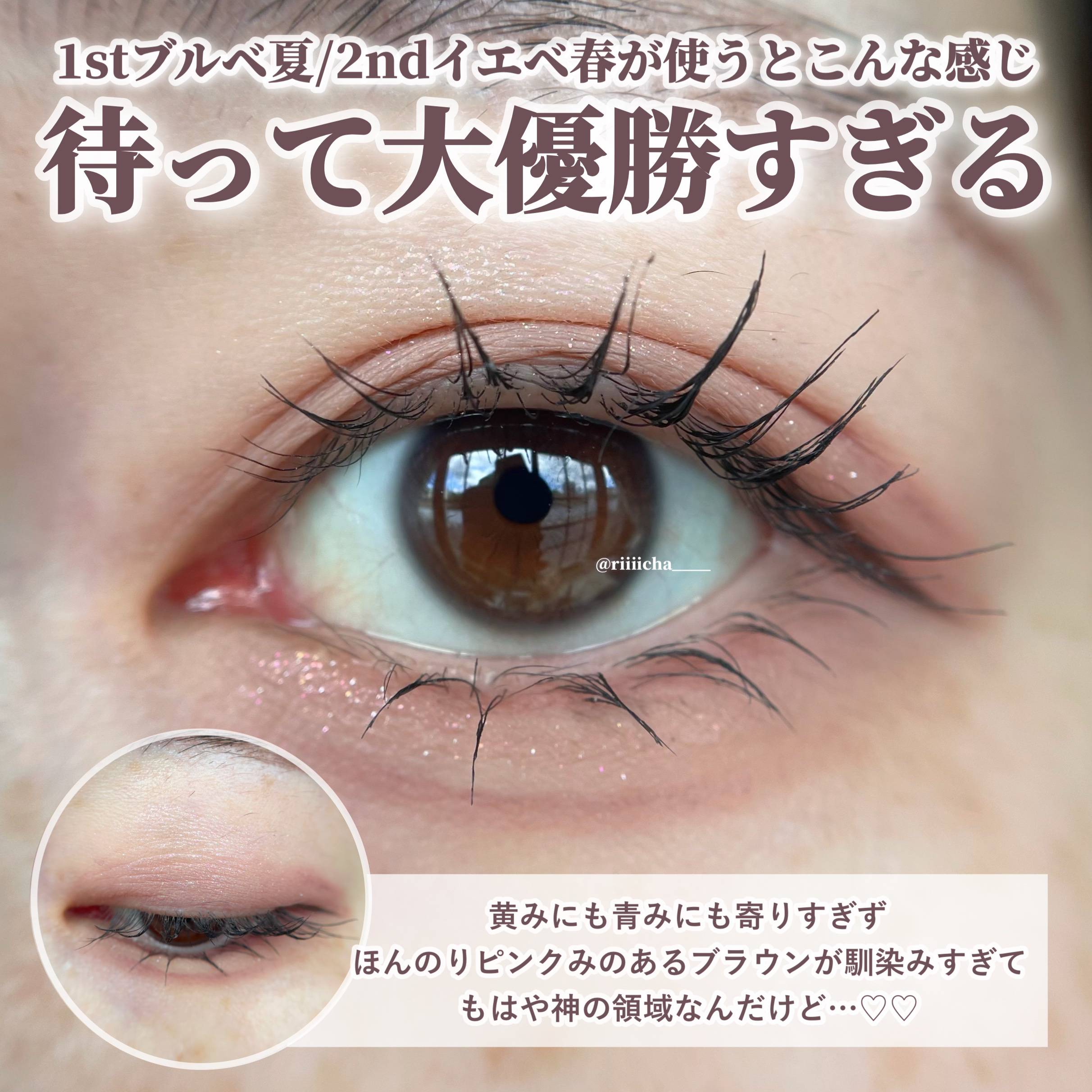 ブルベ夏セカンドイエべ春の私的に大優秀! マット多めのパレットで黄みも青みも強くないニュートラルなピンクのパレットです♡ めちゃくちゃ可愛い、、、ミルクティーみのある柔らかいピンクブラウン! これは一軍入り♡ おまけでミニアイシャドウついてきた! これ次回の新作の匂わせかなぁ?