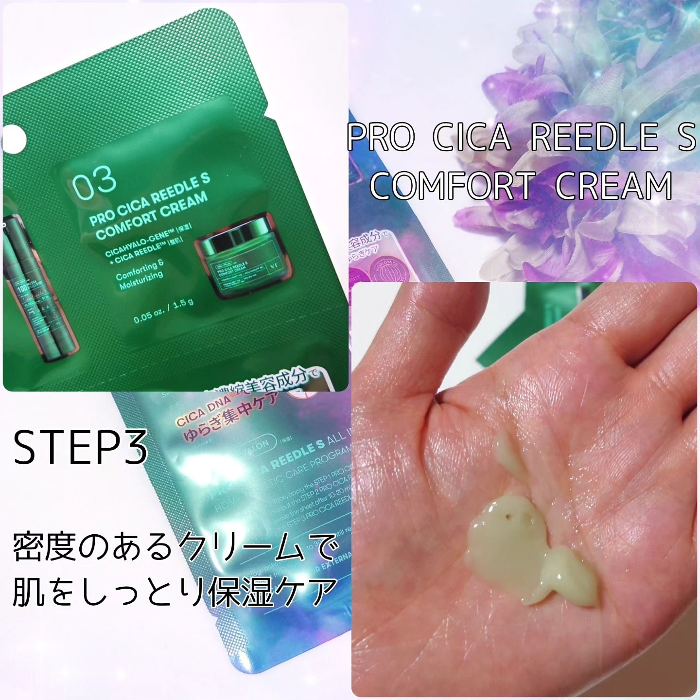 すべてのステップにマイクロニードル*1が入っているマスクです。 とてもトロトロで美容液がたくさん入ったマスクでした。保湿、肌にハリを与えるのによいですね。 しっとりした感じで、3ステップなので、スペシャルケアによさそうですね!