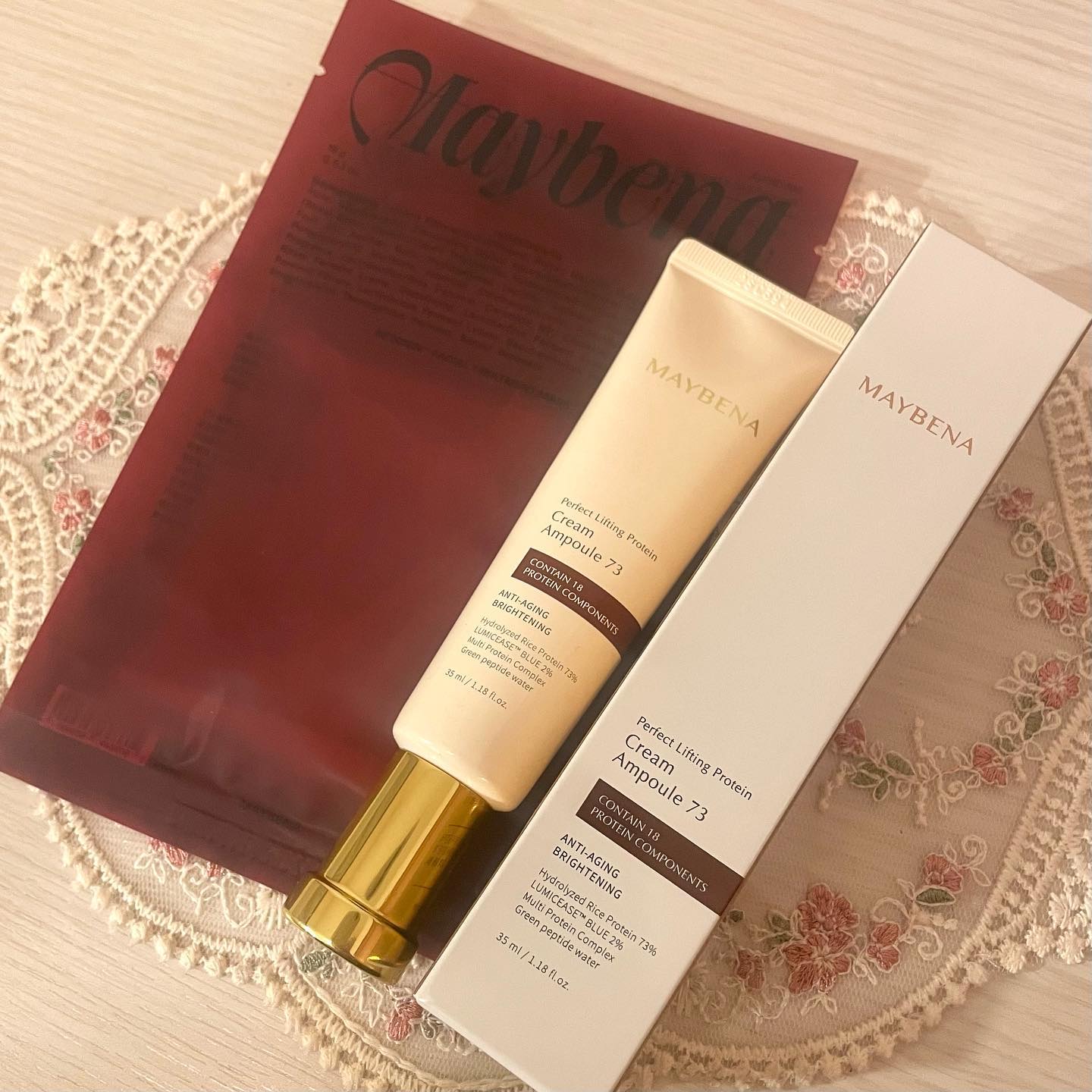 ちょっと前の#Qoo10購入品MAYBENAパーフェクトリフティングプロテインクリームアンプル73(73シワクリーム)✂【ゆるゆるテクスチャが心地いい】“さっぱり”とは少し違う、とろけるようなゆるゆる質感。軽い乳液みたいにスッと伸びる。✼••...