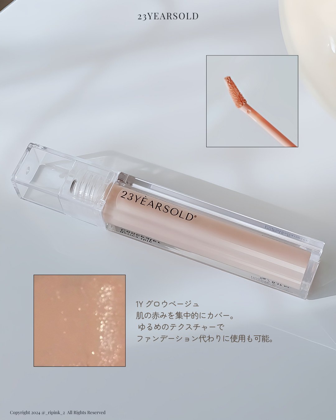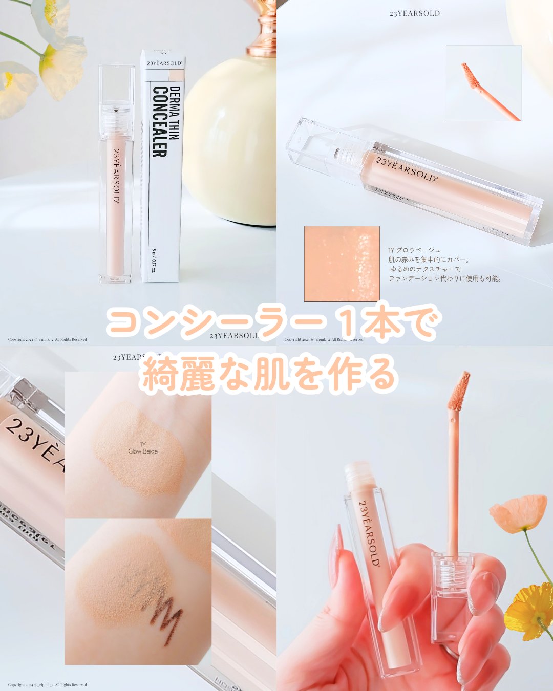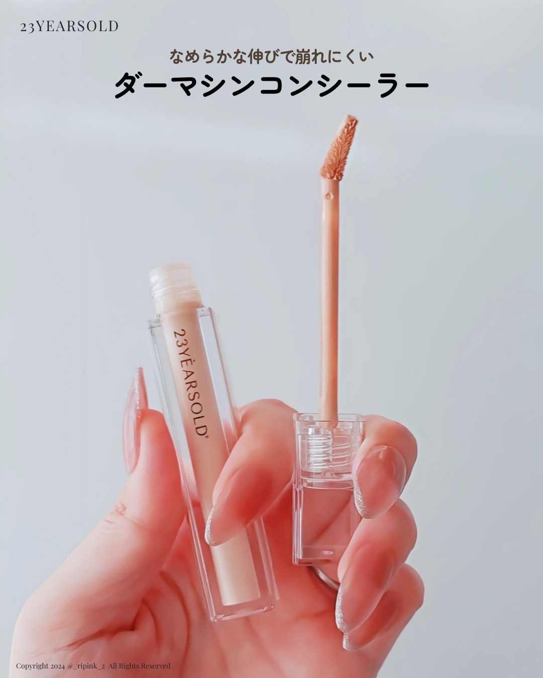 韓国のプレミアムホームケアブランド「23yearsold」。 「ダーマシンコンシーラー」は、韓国のメイクアップアーティストであるハムギョンシクさんと共同開発により作られた商品なのだそう。 こちら1本でファンデーションなしでもベースメイクをきれいに仕上げてくれるというところ。