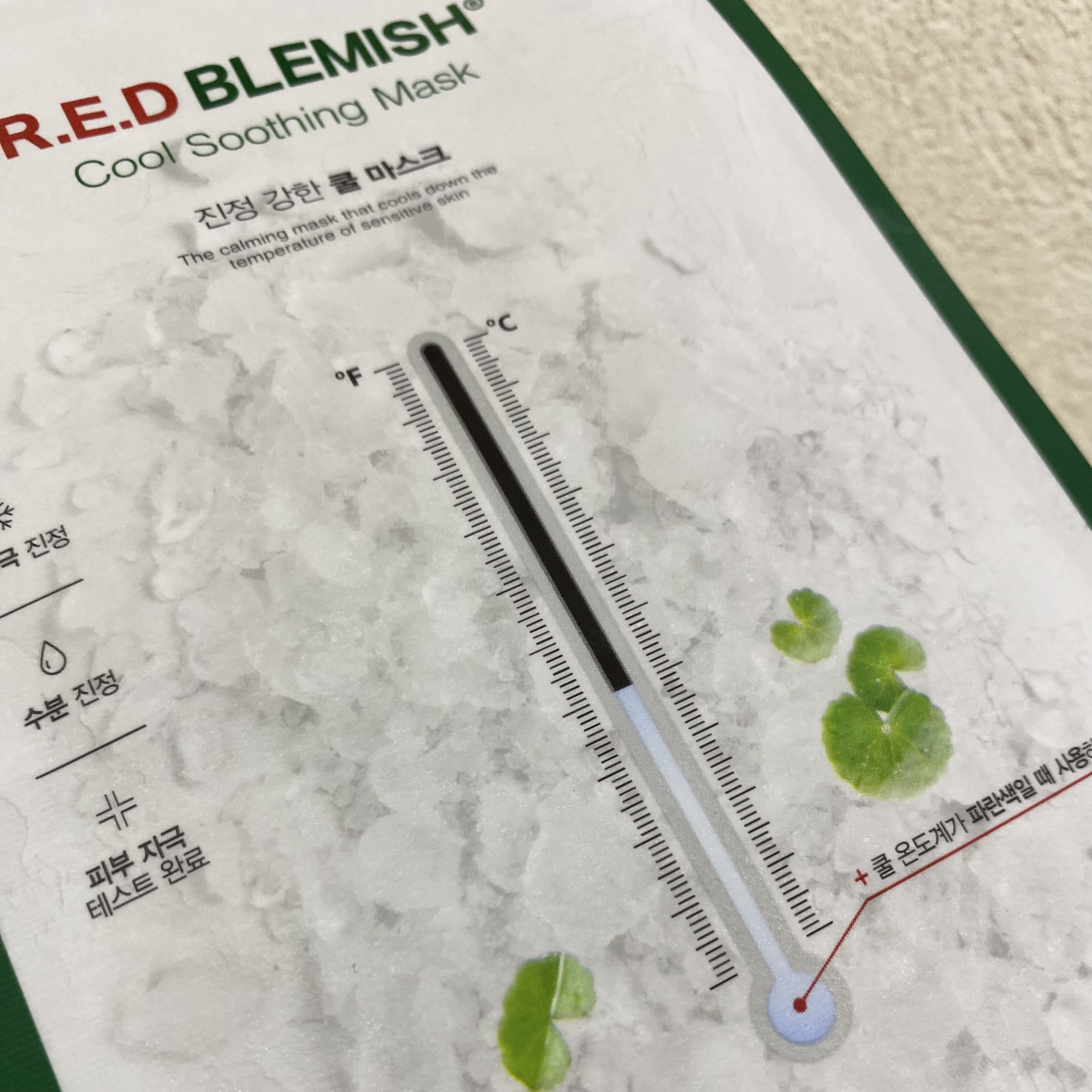 冷やすとパッケージの温度計がブルーに変わります Dr.G レッドブレミッシュクールスージングマスク ひんやり気持ちいい 重すぎないしっとり感 しっかり角質ケアした後のケアとしてもオススメ お風呂上がりに使ったらすごく気持ちよかったです。