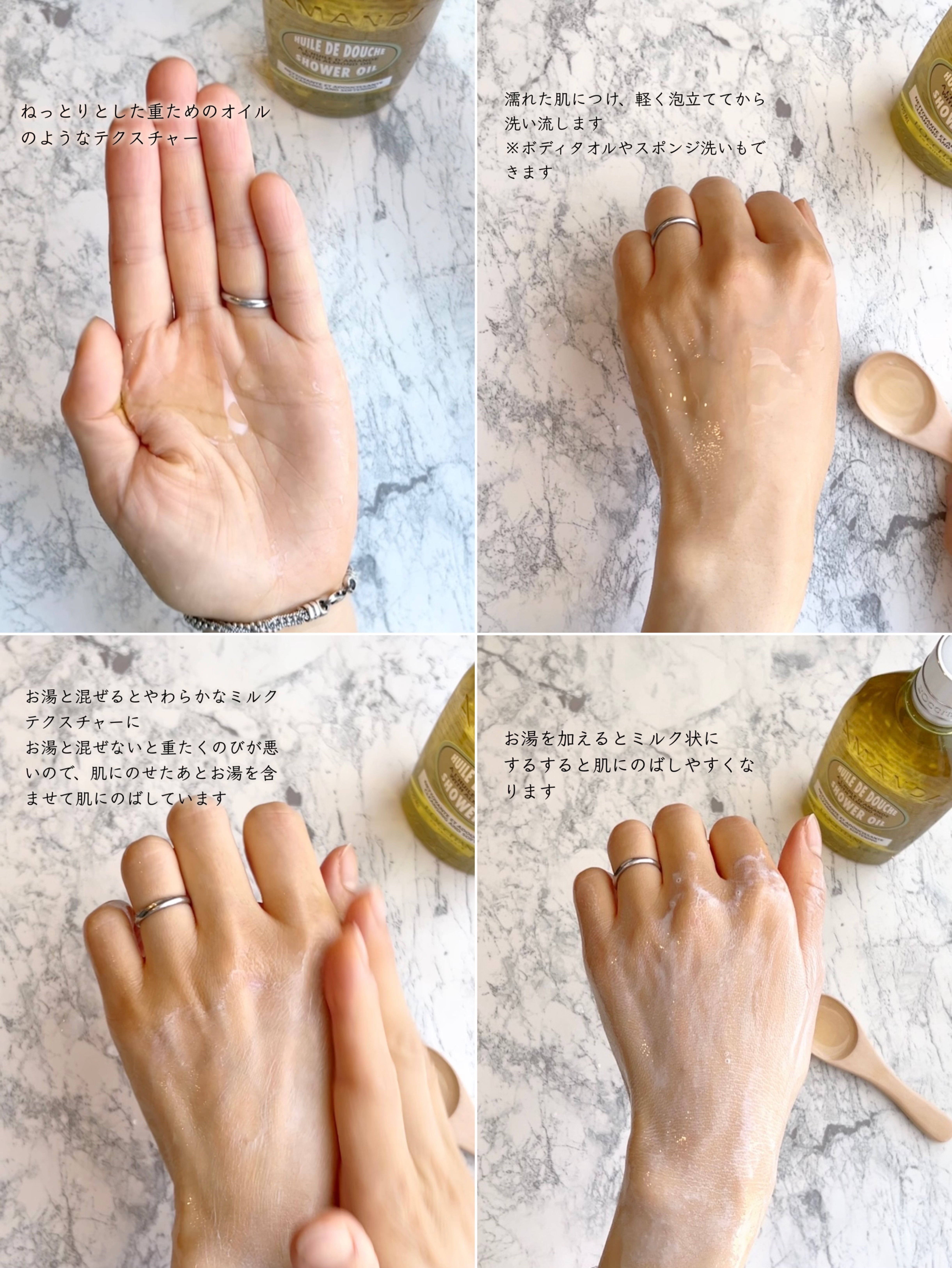 - お肌にたっぷり、甘い香りと贅沢な潤いを。 濡れたボディにつけ、軽く泡立ててから洗い流すユニークなシャワーオイル。肌の自然なバランスを保ちながらソフトに仕上げます。アーモンドのやさしい香りが全身をつつみ、洗い上がりはしっとりツルツルに。