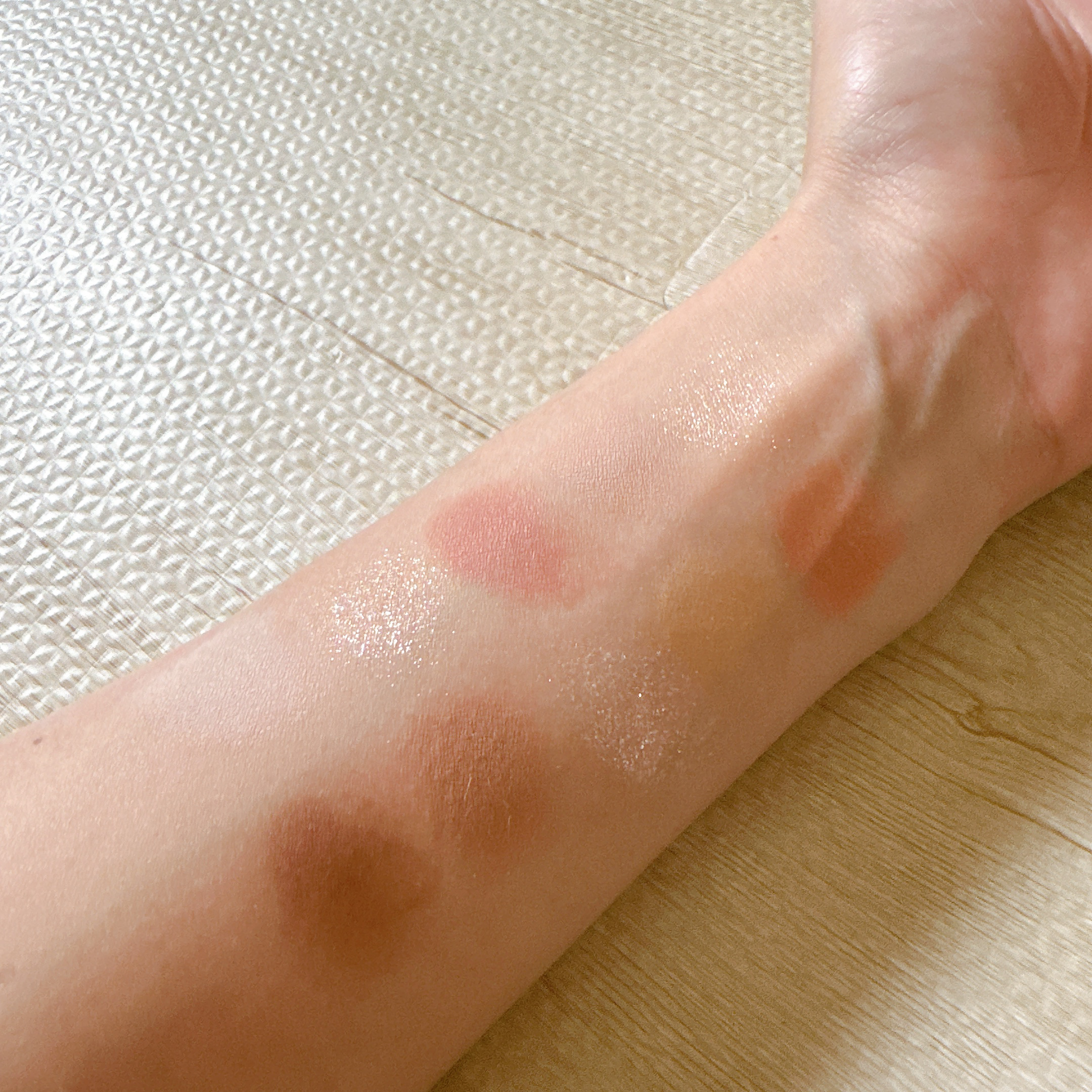 hinceニューデップスアイシャドウパレットのホリデー限定カラー(̨̡ᐢ ⸝⸝o̴̶̷̤ ̫̭ o̴̶̷̤⸝⸝ ᐢ)̧̢ 白パケが可愛い🩷 配色は甘くて優しいカラー( 💓∀💓) 今回は、左下ピンクキラキラとブラウンを中心に使ってみました⭐️