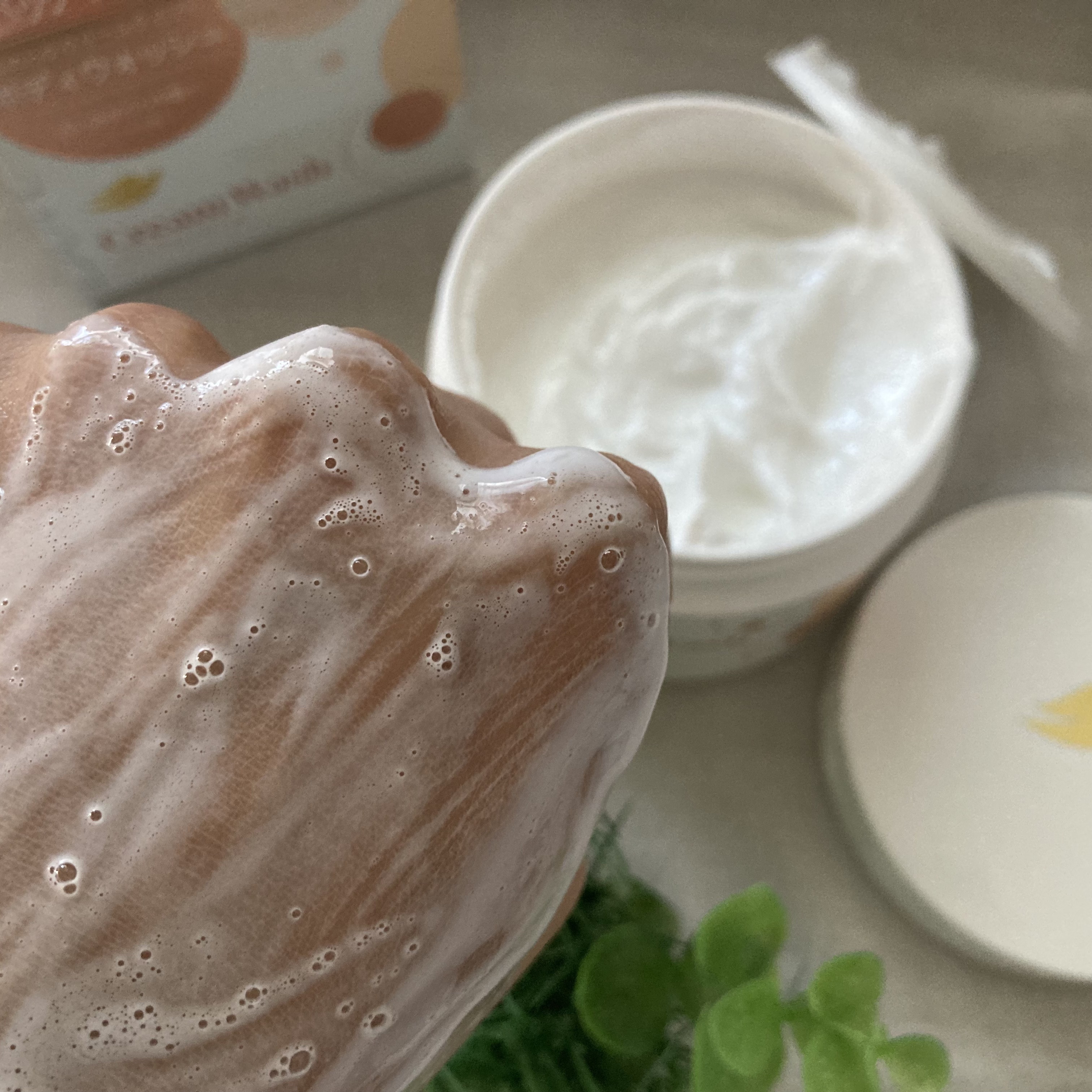 クリームタイプのボディウォッシュ😳! ピンポン玉大を手に取ってそのまま肌に伸ばして洗います👏 ボディクリームがいらないくらいもっちり潤いの洗い上がり🥰! スクラブと混ぜて使ったり泡立てて使うのもおすすめ🙌
