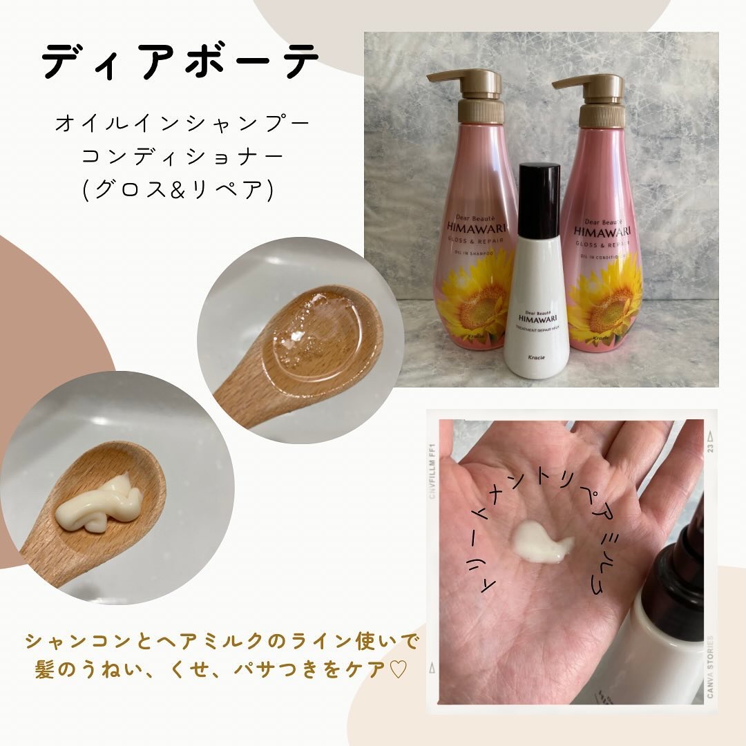 🤍@dearbeautehimawari_kracieディアボーテブルームドールモイスチャーインシャンプー/トリートメントディアボーテトリートメントリペアミルクディアボーテさまからご提供いただきましたブルームドールは、乾燥による髪のうねりやパ...