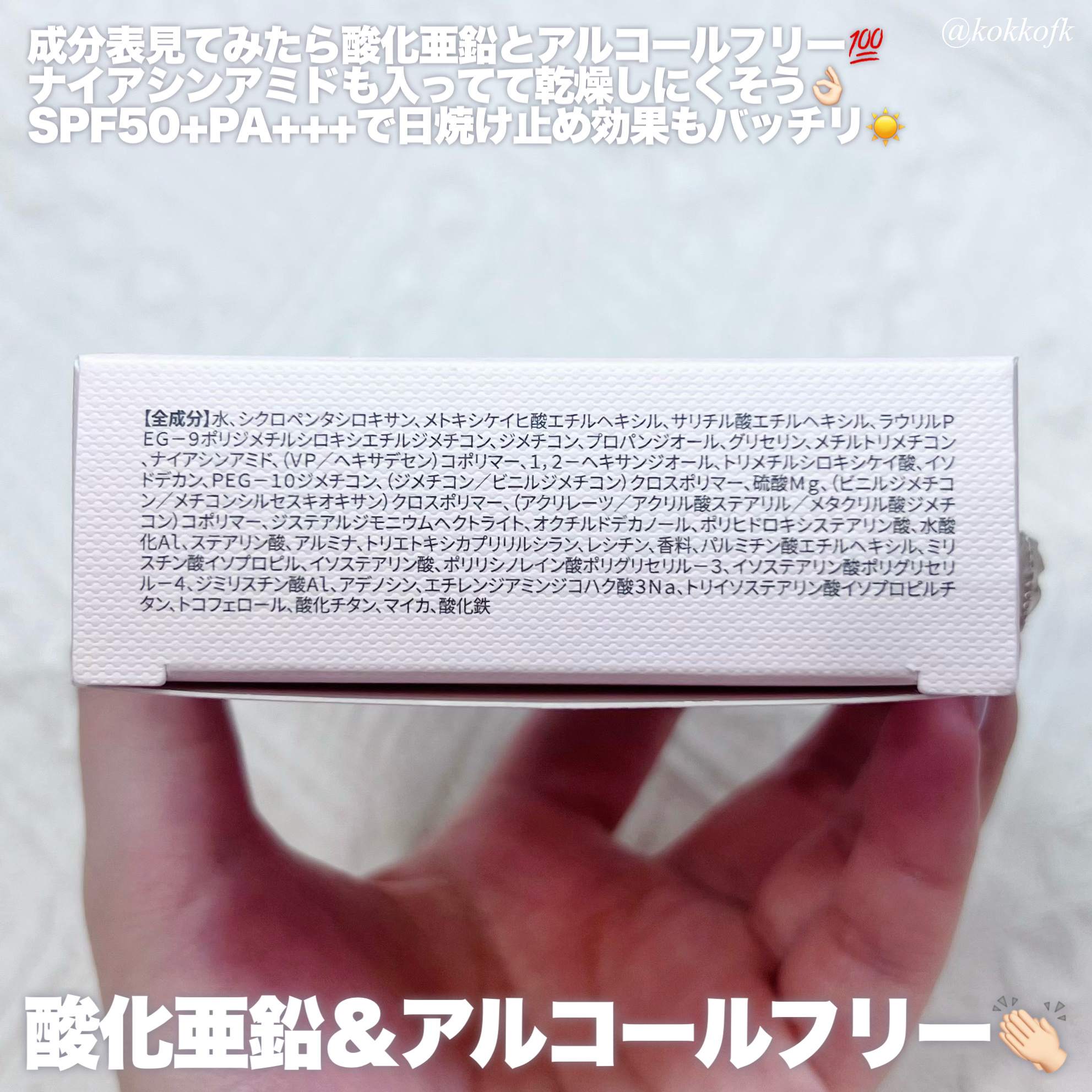 - <21C ランジェリー(LINGERIE)> 水、シクロペンタシロキサン、メトキシケイヒ酸エチルヘキシル、サリチル酸エチルヘキシル、ラウリルPEG-9ポリジメチルシロキシエチルジメチコン、ジメチコン、プロパンジオール、グリセリン、メチルトリメチコン、ナイアシンアミド、(VP/ヘキサデセン)コポリマー、1,2-ヘキサンジオール、トリメチルシロキシケイ酸、イソドデカン、PEG-10ジメチコン、(ジメチコン/ビニルジメチコン)クロスポリマー、硫酸Mg、(ビニルジメチコン/メチコンシルセスキオキサン)クロスポリマー、(アクリレーツ/アクリル酸ステアリル/メタクリル酸ジメチコン)コポリマー、ジステアルジモニウムヘクトライト、オクチルドデカノール、ポリヒドロキシステアリン酸、水酸化Al、ステアリン酸、アルミナ、トリエトキシカプリリルシラン、レシチン、香料、パルミチン酸エチルヘキシル、ミリスチン酸イソプロピル、イソステアリン酸、ポリリシノレイン酸ポリグリセリル-3、イソステアリン酸ポリグリセリル-4、ジミリスチン酸Al、アデノシン、エチレンジアミンジコハク酸3Na、トリイソステアリン酸イソプロピルチタン、トコフェロール、酸化チタン、マイカ、酸化鉄 <21N リネン(LINEN)> 水、シクロペンタシロキサン、メトキシケイヒ酸エチルヘキシル、サリチル酸エチルヘキシル、ラウリルPEG-9ポリジメチルシロキシエチルジメチコン、ジメチコン、プロパンジオール、グリセリン、メチルトリメチコン、ナイアシンアミド、(VP/ヘキサデセン)コポリマー、1,2-ヘキサンジオール、トリメチルシロキシケイ酸、イソドデカン、PEG-10ジメチコン、(ジメチコン/ビニルジメチコン)クロスポリマー、硫酸Mg、(ビニルジメチコン/メチコンシルセスキオキサン)クロスポリマー、(アクリレーツ/アクリル酸ステアリル/メタクリル酸ジメチコン)コポリマー、ジステアルジモニウムヘクトライト、オクチルドデカノール、ポリヒドロキシステアリン酸、水酸化Al、ステアリン酸、アルミナ、トリエトキシカプリリルシラン、レシチン、香料、パルミチン酸エチルヘキシル、ミリスチン酸イソプロピル、イソステアリン酸、イソステアリン酸ポリグリセリル-4、ポリリシノレイン酸ポリグリセリル-3、ジミリスチン酸Al、アデノシン、エチレンジアミンジコハク酸3Na、トリイソステアリン酸イソプロピルチタン、トコフェロール、酸化チタン、マイカ、酸化鉄 <23N ジンジャー(GINGER)> 水、シクロペンタシロキサン、メトキシケイヒ酸エチルヘキシル、サリチル酸エチルヘキシル、ラウリルPEG-9ポリジメチルシロキシエチルジメチコン、ジメチコン、プロパンジオール、グリセリン、メチルトリメチコン、ナイアシンアミド、(VP/ヘキサデセン)コポリマー、イソドデカン、1,2-ヘキサンジオール、トリメチルシロキシケイ酸、PEG-10ジメチコン、(ジメチコン/ビニルジメチコン)クロスポリマー、硫酸Mg、(ビニルジメチコン/メチコンシルセスキオキサン)クロスポリマー、オクチルドデカノール、(アクリレーツ/アクリル酸ステアリル/メタクリル酸ジメチコン)コポリマー、ジステアルジモニウムヘクトライト、ポリヒドロキシステアリン酸、水酸化Al、ステアリン酸、アルミナ、トリエトキシカプリリルシラン、レシチン、香料、イソステアリン酸ポリグリセリル-4、パルミチン酸エチルヘキシル、ミリスチン酸イソプロピル、イソステアリン酸、ポリリシノレイン酸ポリグリセリル-3、ジミリスチン酸Al、トリイソステアリン酸イソプロピルチタン、アデノシン、エチレンジアミンジコハク酸3Na、トコフェロール、酸化チタン、酸化鉄、マイカ