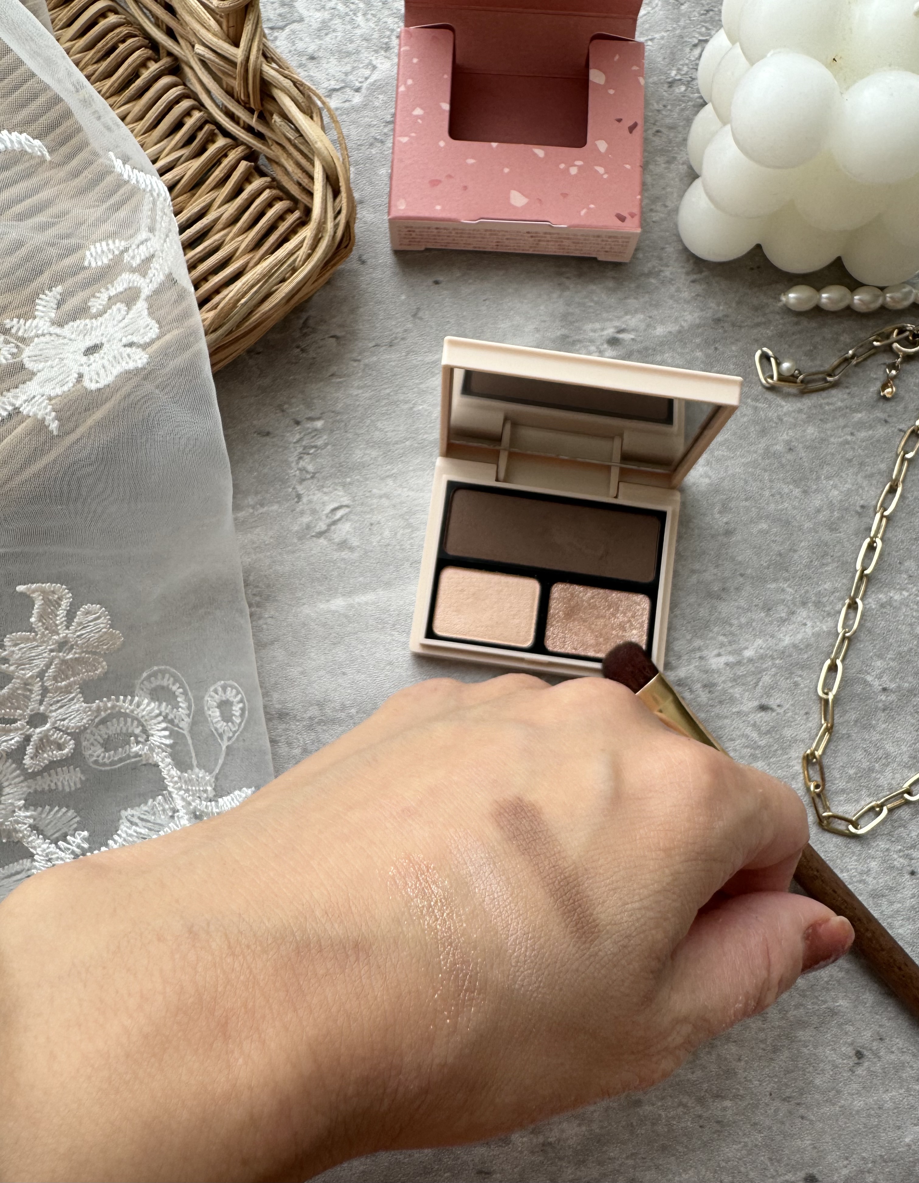 - 異なる3つの質感と色のレイヤードを楽しめるアイカラーパレット。 ■柔らかな質感でまぶたに溶け込むように馴染むマット ■目元のくすみを飛ばす(*1)偏光パール配合のシマー ■異なるサイズの立体的にきらめくラメ 保湿美容成分(ヒアルロン酸Na・ホホバオイル(*2))配合。 *1 メイクアップ効果による *2 ホホバ種子油