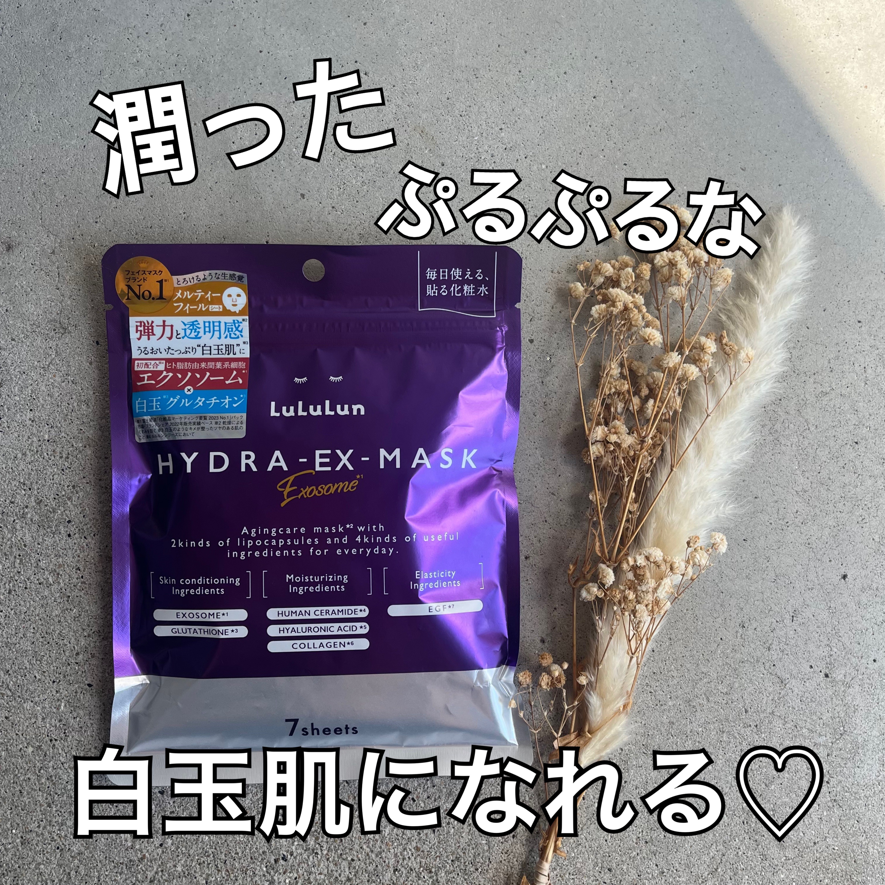 - ルルルンハイドラシリーズから新登場。うるおいにプラスするのは、「エクソソーム*1」。先端再生テクノロジーにインスパイアされた、デイリーエイジングケア※1マスクです。白玉※2グルタチオン*2をプラス配合し、弾力・透明感※3・つやめきのあるなめらかなお肌へ導きます。 (*1 整肌成分 ヒト脂肪由来間葉系細胞エクソソーム *2 整肌成分 グルタチオン、アルブチン、レシチン ※1 年齢に応じて肌へうるおいと弾力を与えるケアのこと ※2 白玉のようなキメが整ったツヤのある肌のこと ※3 うるおいを与えて、乾燥によるくすみを防ぐ)