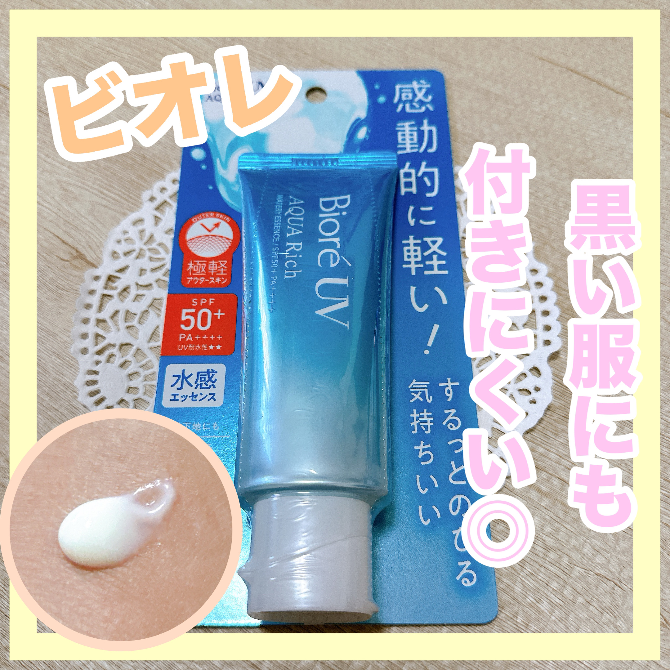 信頼ビオレの日焼け止め徹底比較アクアリッチシリーズです。●基本情報①ビオレUVアクアリッチウォータリーエッセンスクリーム色のクリームです。チューブから出てくるやつ(以後クリーム)②ビオレUVアクアリッチアクアプロテクトミストミストが出せる透明...