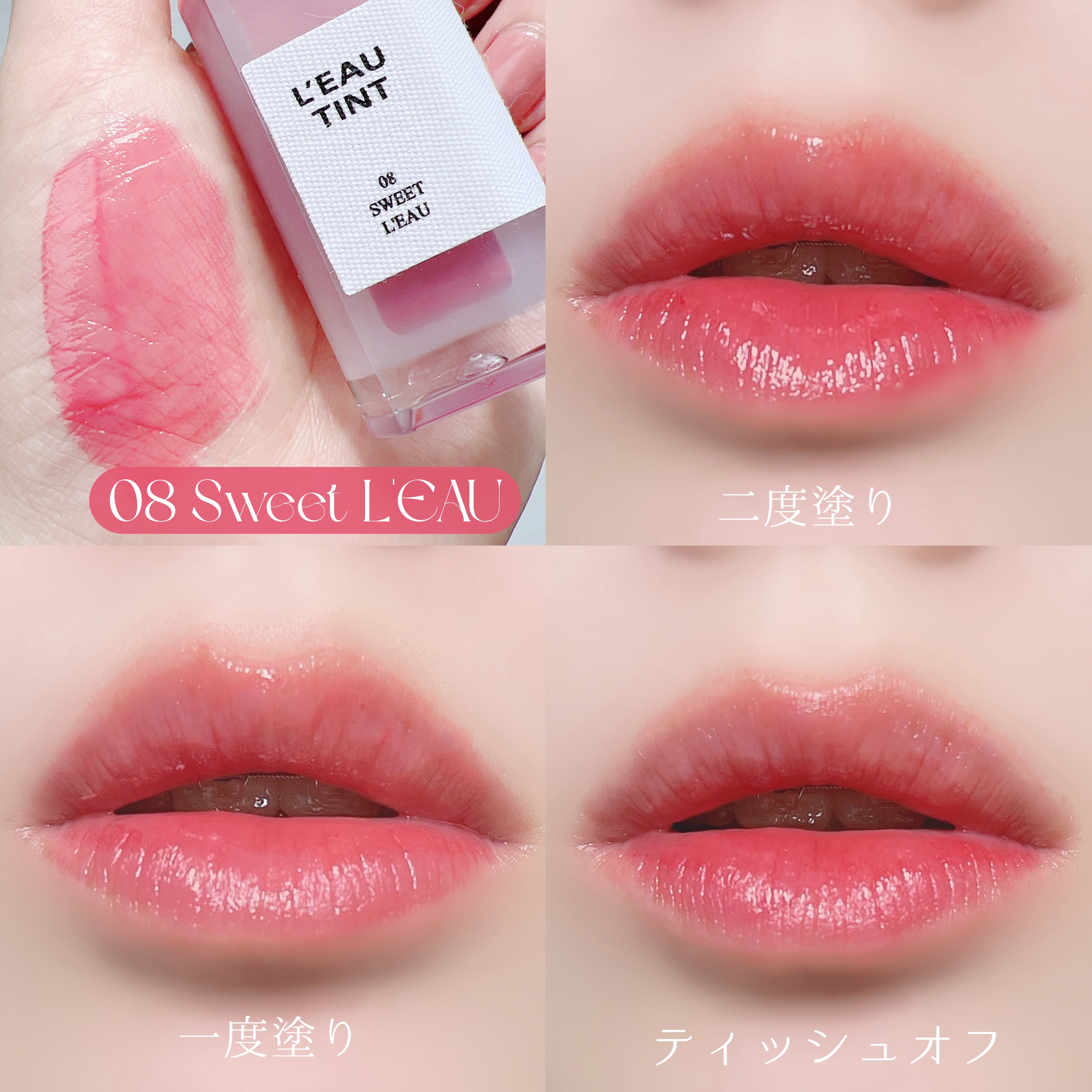 なめらかなつけ心地と落ちにくさすごい✨ ツヤっとしていて透明感もあり☺️ 膜を薄く張ったようなしっとり感で、 塗ってから60秒ほど待ち、 ティッシュオフしてもそのしっとり感は 残っている印象🌼 さらに色移りしにくい仕上がりでした🤍 食べたり飲んだりした時もフチだけ 色残り現象は特になかったです🌱 肌なじみのいいコーラルピンク💕 青みがかわいいモーヴピンクカラー💕 ほどよいテラコッタオレンジ系カラー🧡 青みのあるチェリーレッドカラー🌹 ブラウンレッド系のカラー🤎 ディープレッドカラー🥀