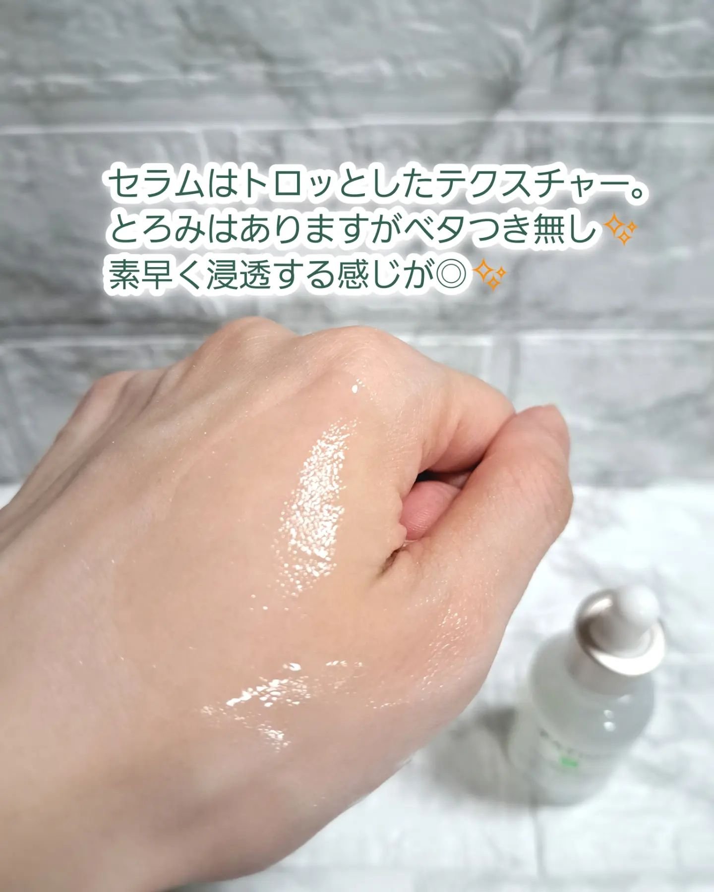 | とろみのあるテクスチャーだけど、肌にのばすとさらっとしていてみずみずしい使用感だよ☺️ | 詳細を見る | |