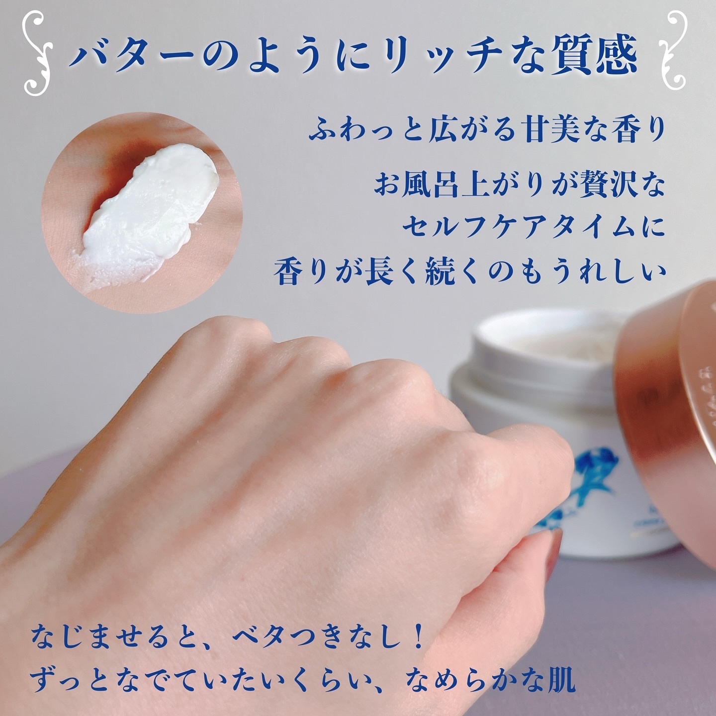 | ボディバターに近い高保湿なテクスチャです。 | 詳細を見る |
