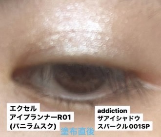 プチプラだけど色味と着け心地が大好きなexceLスキニーリッチシャドウの底見えカラーと似てる色を探してみた🙋🏻 色持ちはどちらも良く、若干ADDICTION のほうがラメが細かいかな。 粉も柔らかく、さすがデパコスといった感じの持ちの良さと発色の良さ♡