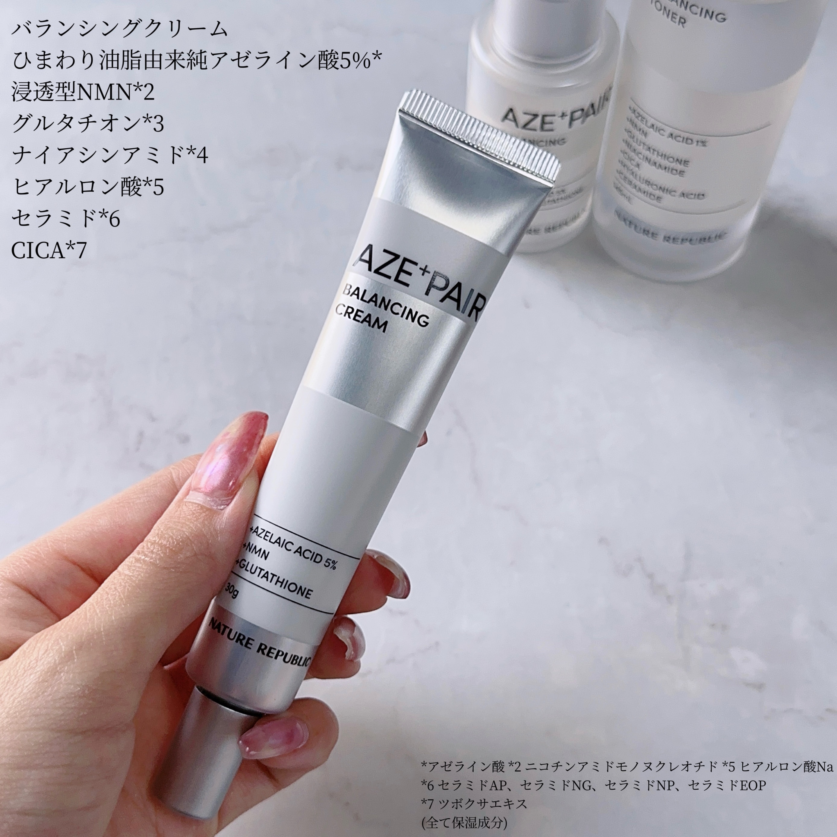大人気のAZE+PAIRシリーズに30枚入り大容量シートマスク新登場! \純アゼライン酸5%🌻/ひまわり種子由来の純度99%アゼライン酸(保湿成分)+浸透型NMN(ニコチンアミドモノヌクレオチド)配合美容液。 うるおいと美容成分をW補給する濃密なミルクタイプで伸びが良くうるおってツヤ肌になるよ🌟🌟🌟