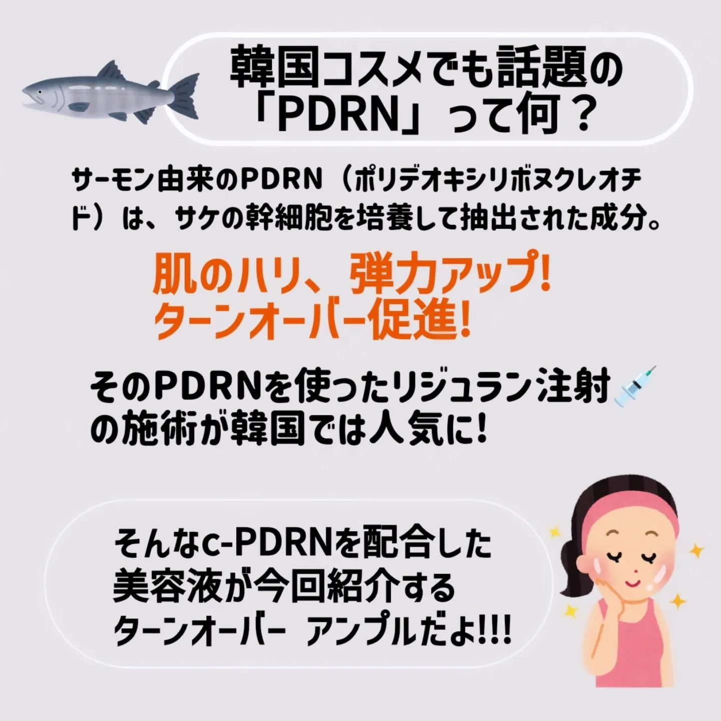 - 世界中で愛され、累計500万本以上の販売を誇るターンオーバーアンプル。 リジュラン独自開発のDOT™技術で最適化されたc-PDRN※1と、肌にうるおいを与えるヒアルロン酸Na※2、さらにα-ビサボロール※3などの厳選成分を贅沢に配合しています。 肌になじみやすいテクスチャーで、角質層までうるおいを届け、肌本来のすこやかさを保ちながら、なめらかで透明感※4のある肌を目指します。 古い角質をやさしくケアし、乾燥やキメの乱れ※5によるくすみを防いで、ツヤ感と明るい印象の肌へ。 特に気になる目元や口元などの乾燥しやすい部分にうるおいを与え、外的刺激から肌を守ります。使うたびにうるおいに満ちた、キメの整った印象の肌へ導きます。 また、年齢に応じたうるおいケア※6をしたい方にもおすすめのアイテムです。 ※1 加水分解DNA:整肌成分 ※2 保湿成分 ※3 整肌成分 ※4 肌がうるおってすこやかに見える状態のこと ※5 乾燥によるキメの乱れ ※6 年齢に応じたスキンケアのこと
