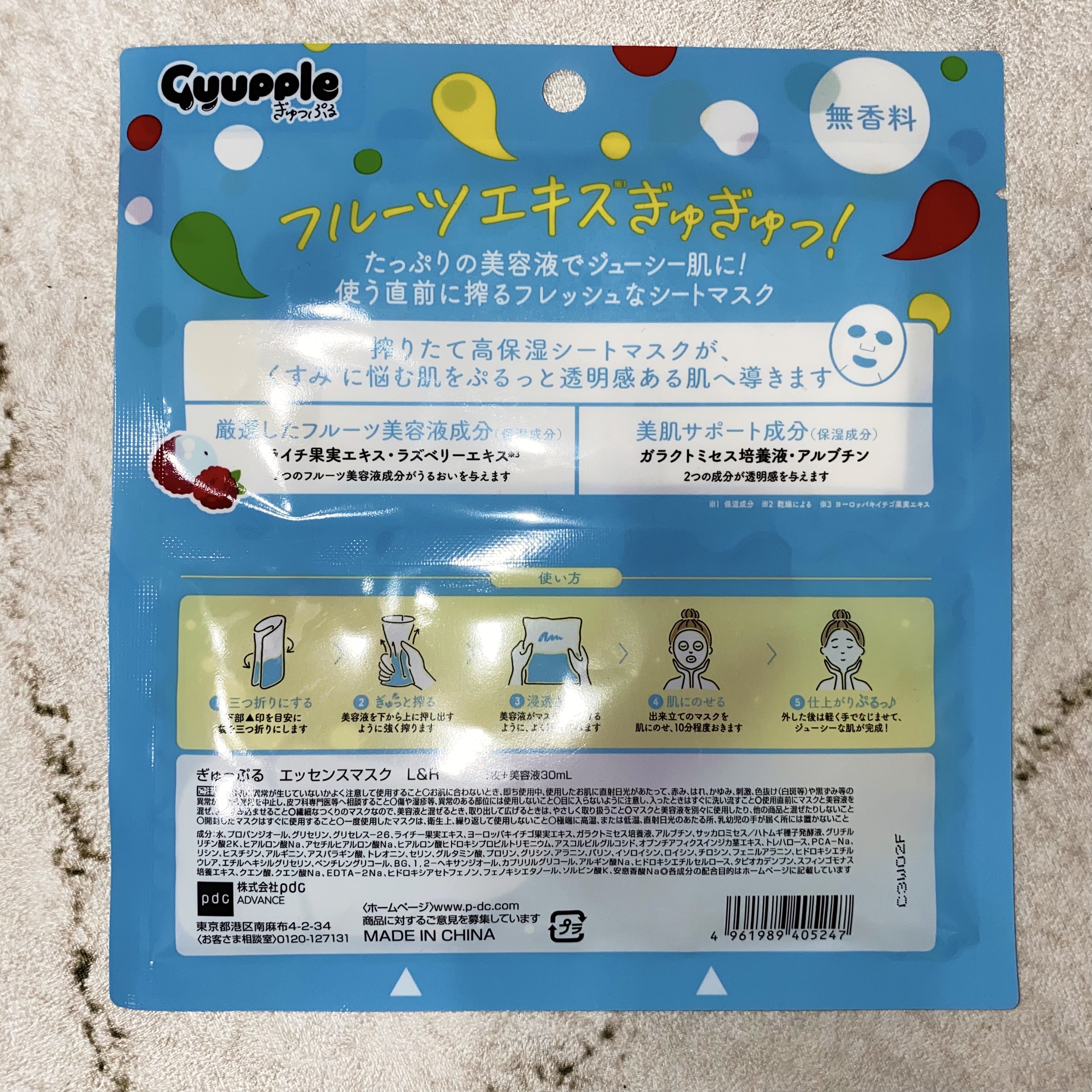 #ぎゅっぷる #提供品※2025年使用品シートマスク・商品名pdcぎゅっぷる エッセンスマスクA&L エッセンスマスクL&R エッセンスマスクO&S・値段定価396円(110円で購入)(りんご)(105円で購入)(ライチ)・購入場所ドンキ(り...