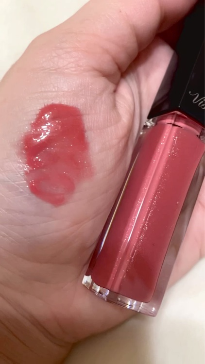 バニラミントの香りがほんのりします。つけると、プランパーと記載があるようにスースーしたあと、少しじんじんと効果を感じられました。 ひと塗りでしっかり発色しました。リップカラーとしても、しっかり使えますね。これ一本でリップとグロスの役割を果たしてくれそうです。 画像、動画でわかるようにラメが目視でわかるくらいキラキラしていますよね😄 実際に口につけても角度によって輝いていて可愛かったです。
