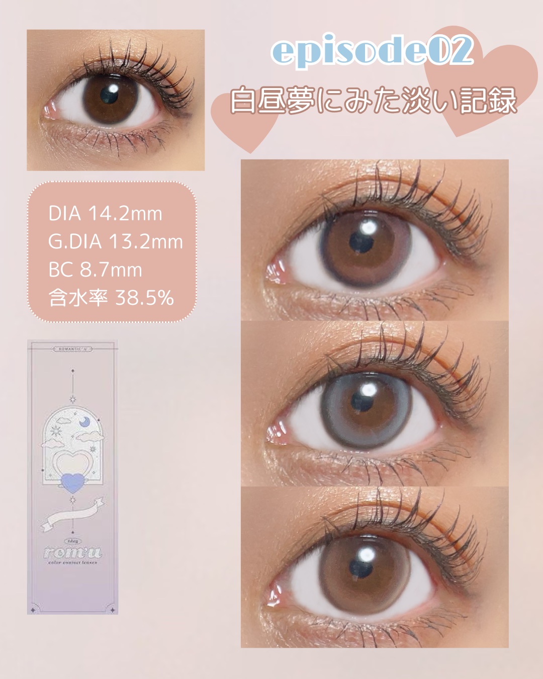 rom’uから新シリーズepisode03がでた𖤐 ̖́- 新シリーズと欠品度数続出のepisode01/02を含めた全色レビュー 新作は中毒性のある大きめ×強めでしっかり盛れるレンズです︎🫶🏻 メガ割でクーポン使用 20%Offで購入できるのでチェックしてみて🪄