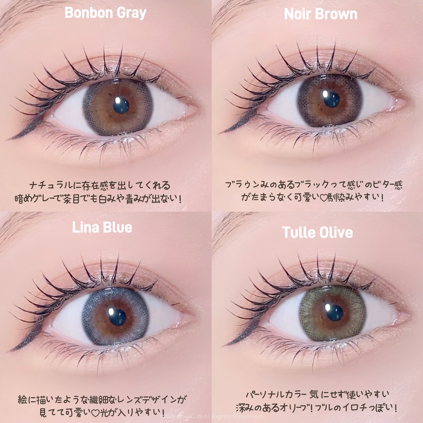 新カラコンブランド"𝑴𝒊𝒊𝒀𝒖𝒖(ミィーユ)"🤍 着色直径は12.9〜13.3mmでサイズ的にはそこまで大きくないけどなんだかとっても惹き込まれる繊細デザイン🫧 🩶 #ボンボングレー これすっっっごいかわいい!!グレーってしっかり発色なことが多いんだけどこのうるみ感と自然なフチ感込みで理想すぎた👏🏻 個人的にボンボングレーの発色好きすぎた❣️❣️ ボンボングレー以外の3色はラメ入ってるみたいにチラチラと輝くデザインで上品さとトレンド感が両立しててかわいかった💎