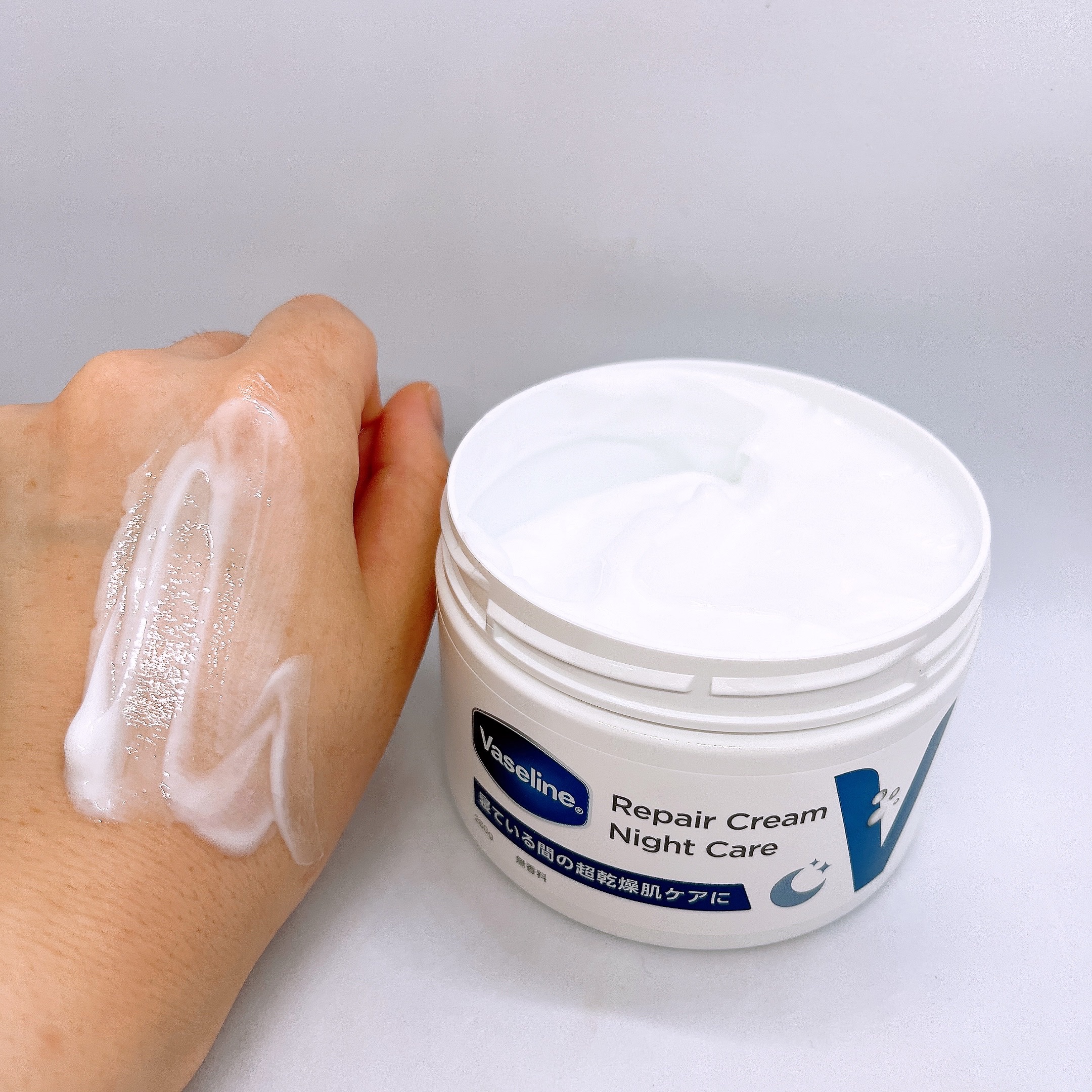 ヴァセリンから、超乾燥肌向けのナイトクリームが登場! べたつかずにスーッと肌になじむクリームが、超乾燥肌にも浸透し、うるおいを与えます。 保湿力がとにかく高くてしっとりもちもちの肌にしてくれます✨ 私は夜使いましたが、朝起きてもしっかり保湿されてました✨ 香りも良いので使う度に癒されます🍀*゜ 大容量なのでコスパも良いのが嬉しいです🙌