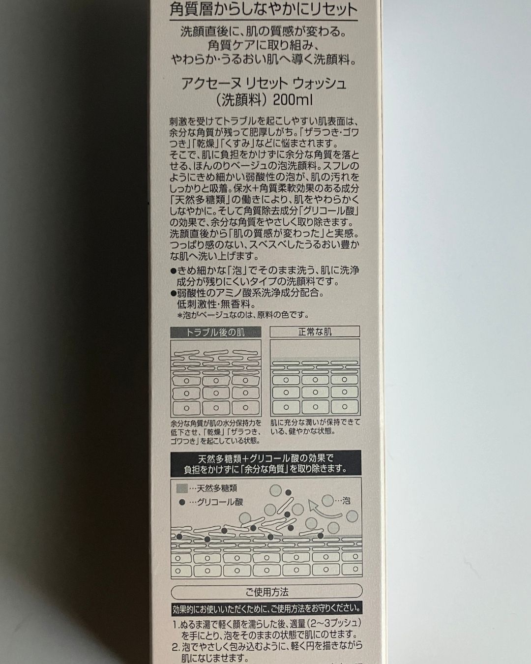 - 肌に負担をかけずに余分な角質をオフ。 潤いをキープする泡状洗顔料。 プッシュするだけで理想的な泡が出現。 グリコール酸配合で、肌をほぐしながら余分な角質をやさしくオフ。 ゴワつきのないやわらかな肌に洗い上げます。 ■低刺激性・無香料・弱酸性・アルコール(エタノール)フリー (すべての方に、肌トラブルが起こらないというわけではありません。) ■泡のベージュ色は、配合成分の色です。