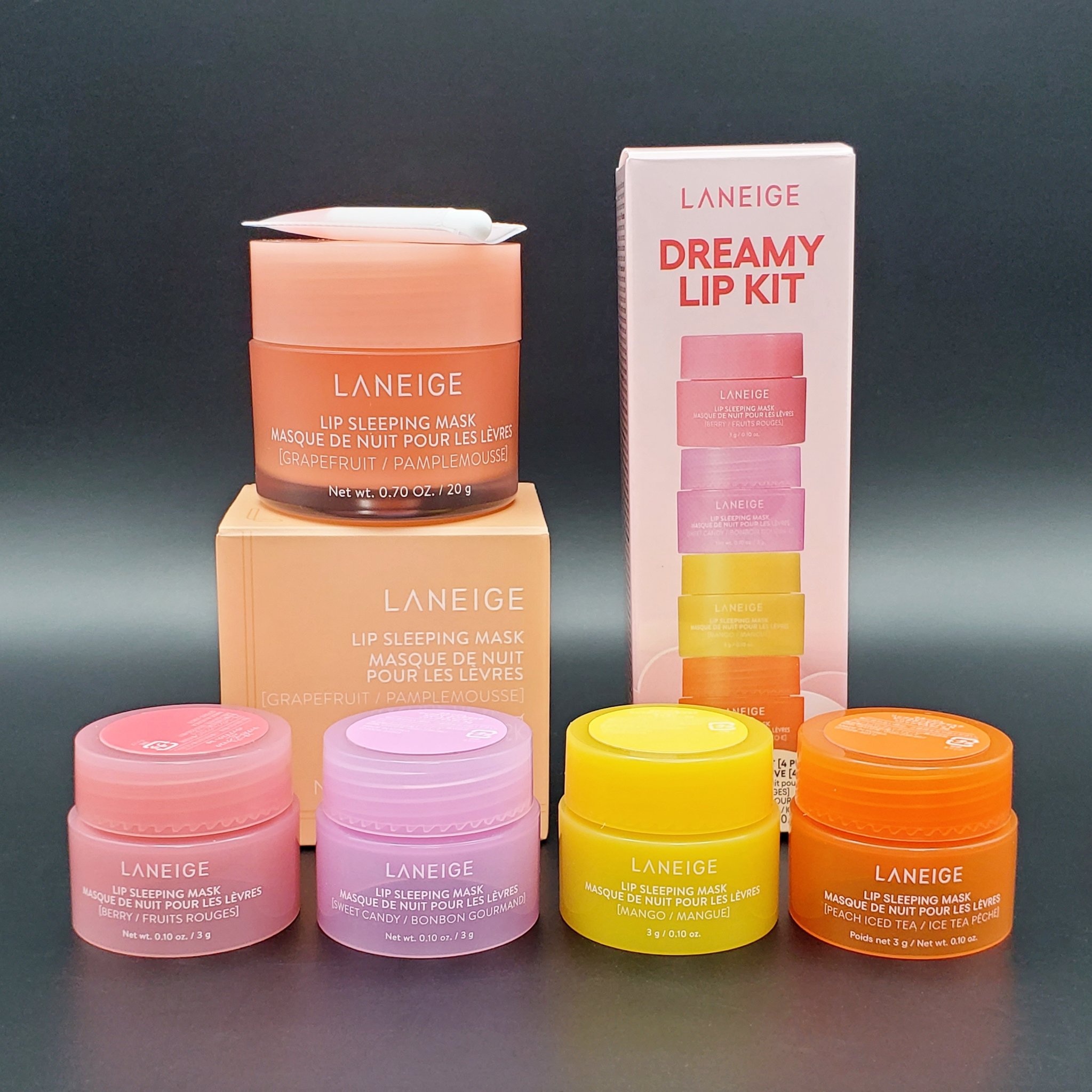 LANEIGE リップマスクのフレーバー5種類が入ったミニサイズ(1個3g)のスペシャルキット✨ 内容は定番のベリー、グミベアに加え、限定のマンゴー、ウォーターメロン、ピーチアイスティーを含む計5種 毎晩どのフレーバーにしようか悩めるのが嬉しいです🌠