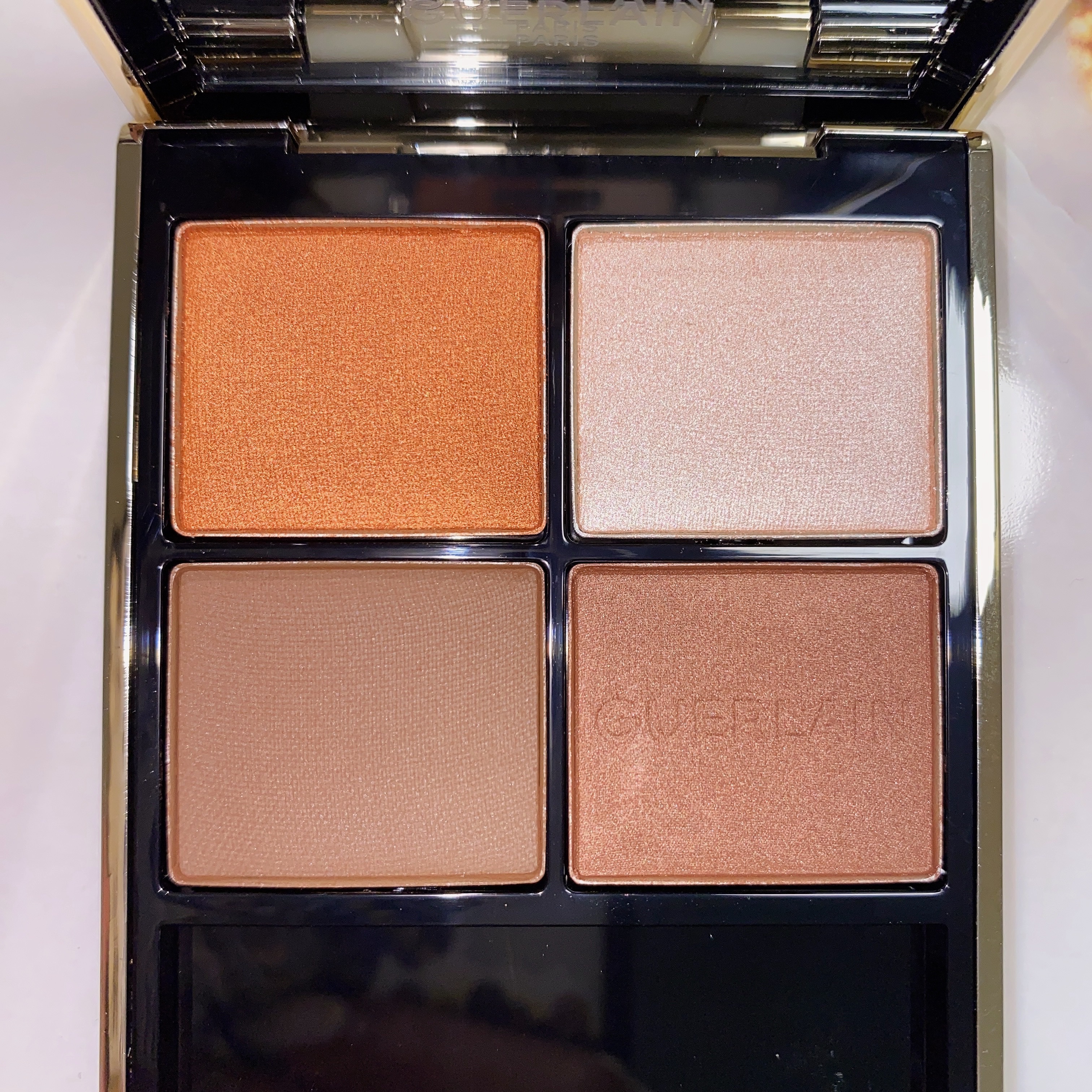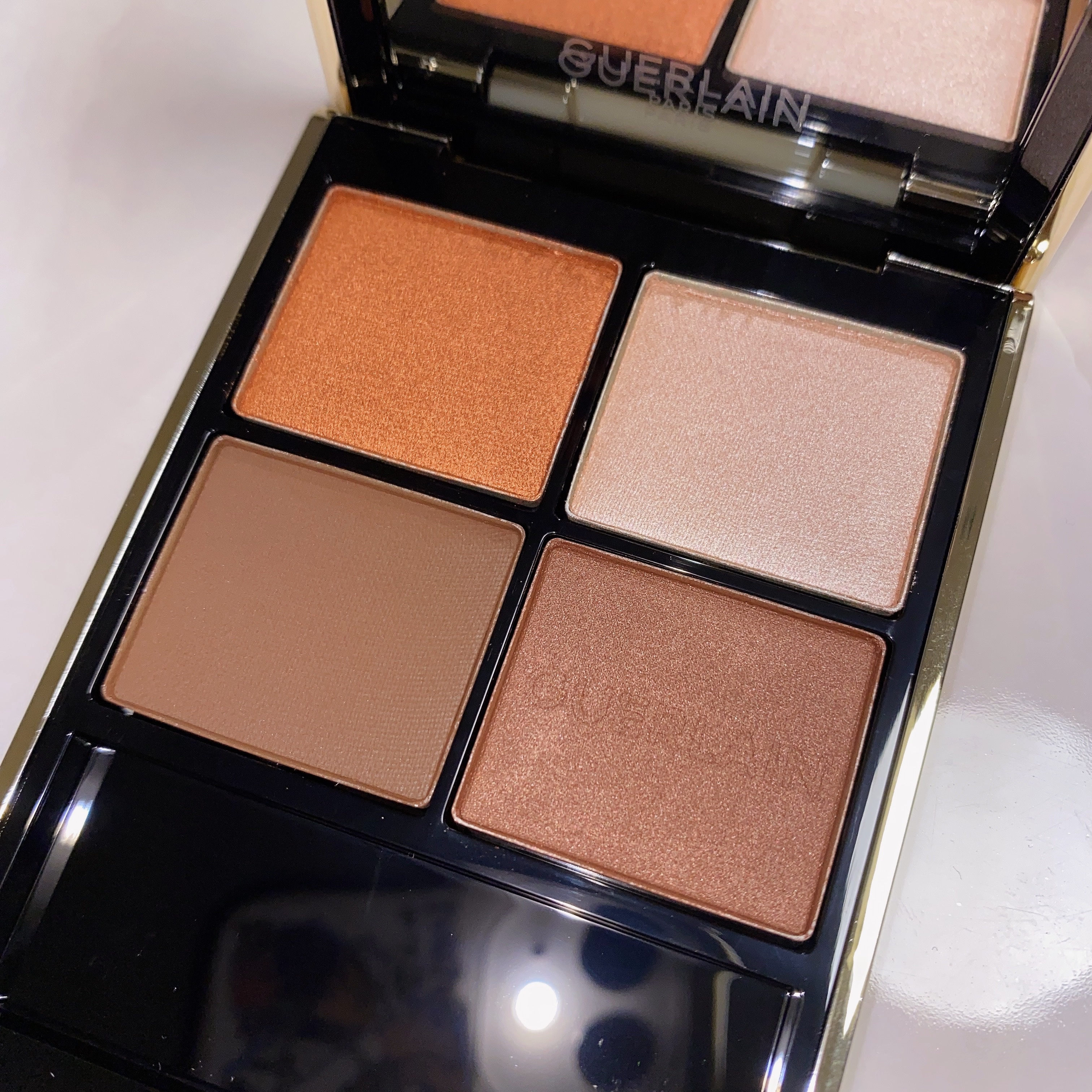 - 〈オンブル ジェ〉は、色鮮やかなピグメント配合の、シルキーなテクスチャー。長時間続く美しい発色と奥行きで目もとを彩る、ゲランの4色入りアイシャドウパレットです。 サテン、マット、メタリック、イリディセントの4つの質感に、それぞれ最適なバランスでピグメントとパールを配合することで、心を奪う鮮やかな発色と深みのある仕上がりを叶えます。それはまるで、自然から生み出された宝石のようなプリミティブな輝きと存在感。 シェード、テクスチャー、フィニッシュを遊ぶように組み合わせ、昼でも夜でも、目もとを色とりどりに彩る、多彩でバランスのとれたパレットに仕上げました。 また、ホリデーコレクションから、きらめく折り紙の精巧なパターンをまとった〈オンブル ジェ〉が登場。 シマーゴールドやスパークリングシルバー、ウォーム ヌード、ブラウンのニュアンスが絶妙に重なり合い、星の輝きを目元に宿すアイシャドウ パレット。