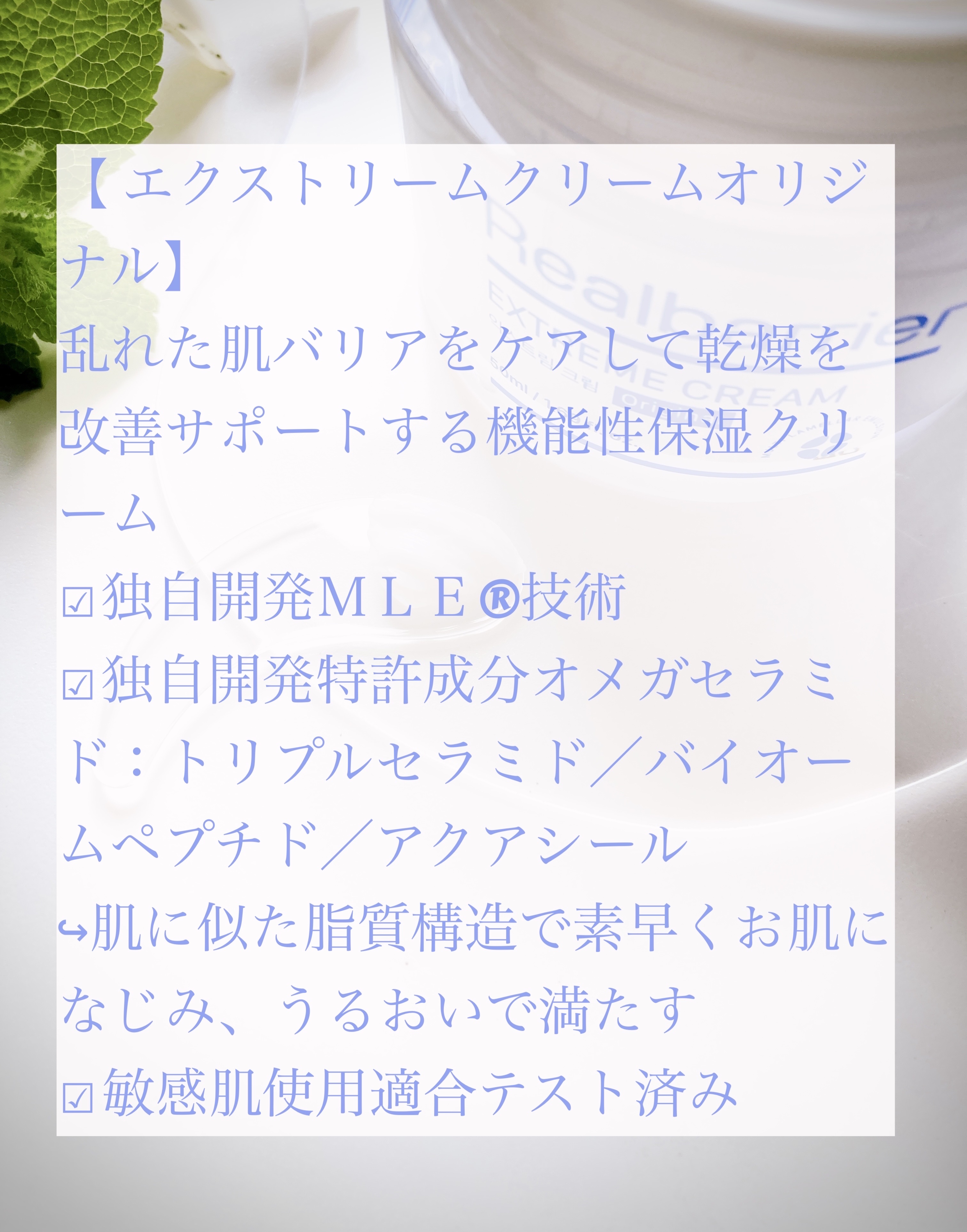 | みずみずしいジェルクリームの心地よさ🫧 さらっとしたつけ心地で、朝のスキンケアにも使いやすいテクスチャー🌊 | 詳細を見る |