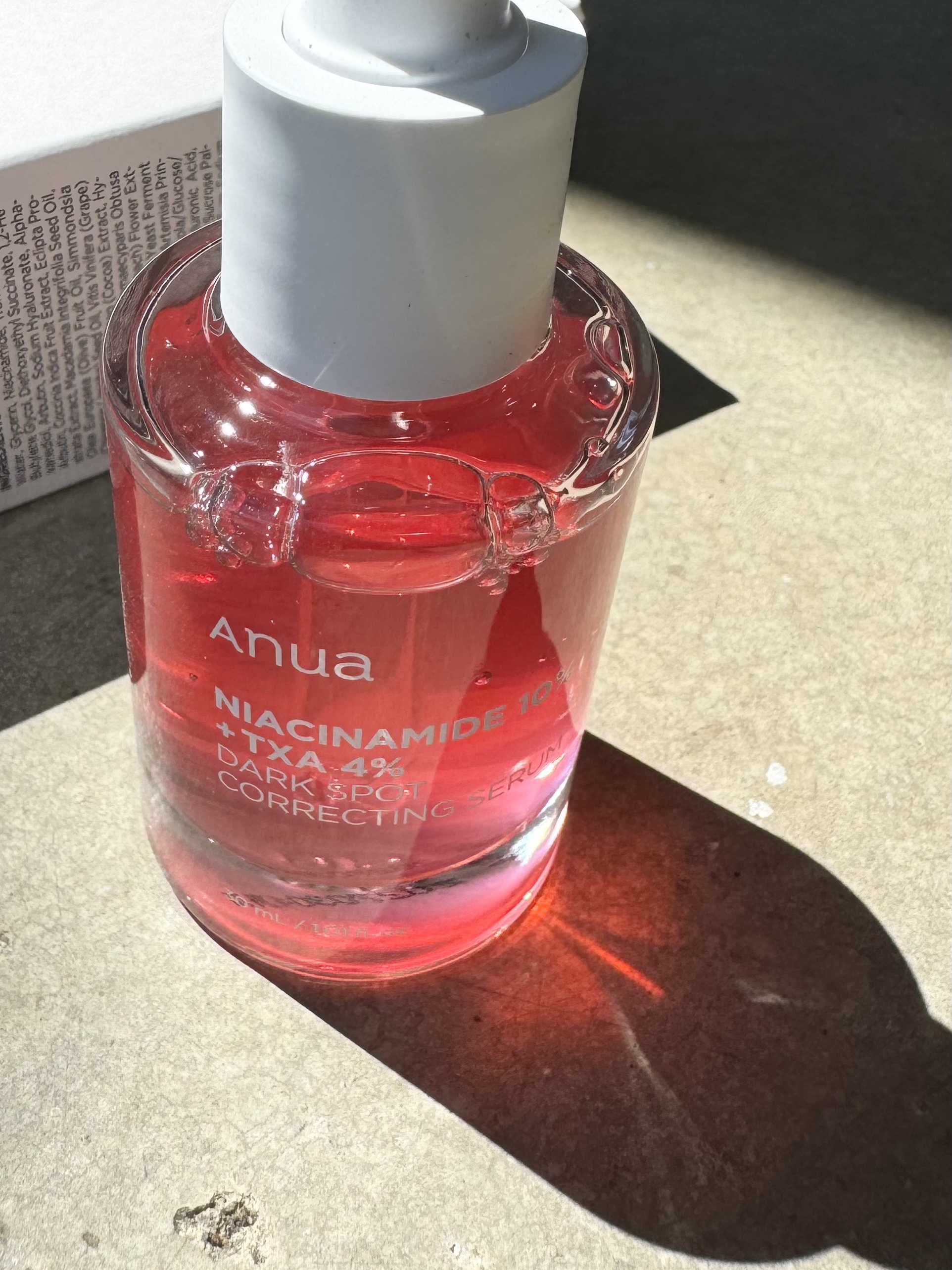 Anuaの真っ赤な美白* セラム🫶❤️ ▶︎ダークスポットセラム ♡ナイアシンアミド10% ♡トラネキサム酸4% ♡アルブチン2% と 美白* 成分が豪華に高配合💖 攻めの美白* 美容液なのに、朝夕関係なく肌への負担なく毎日誰でも使えるよ😉❣️
