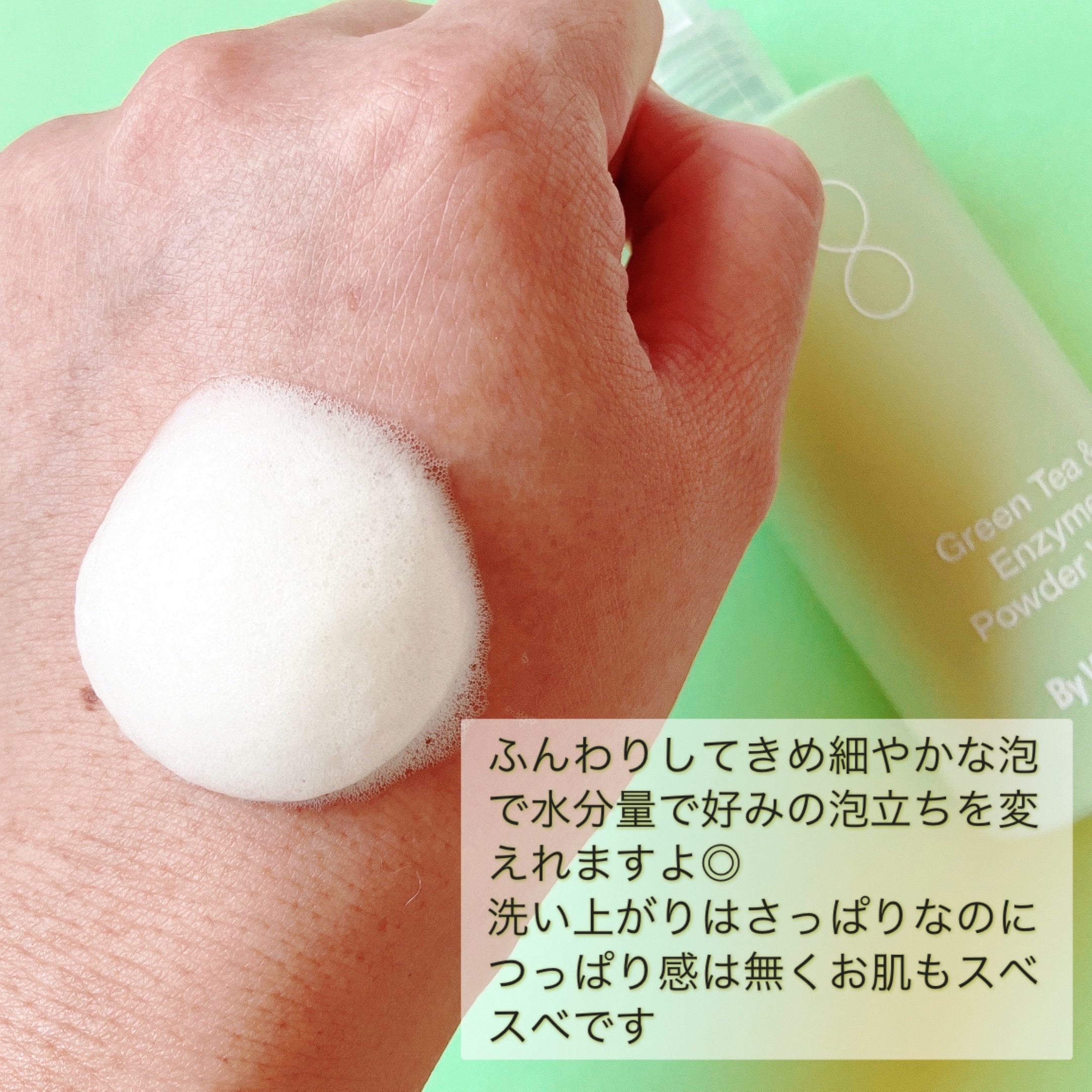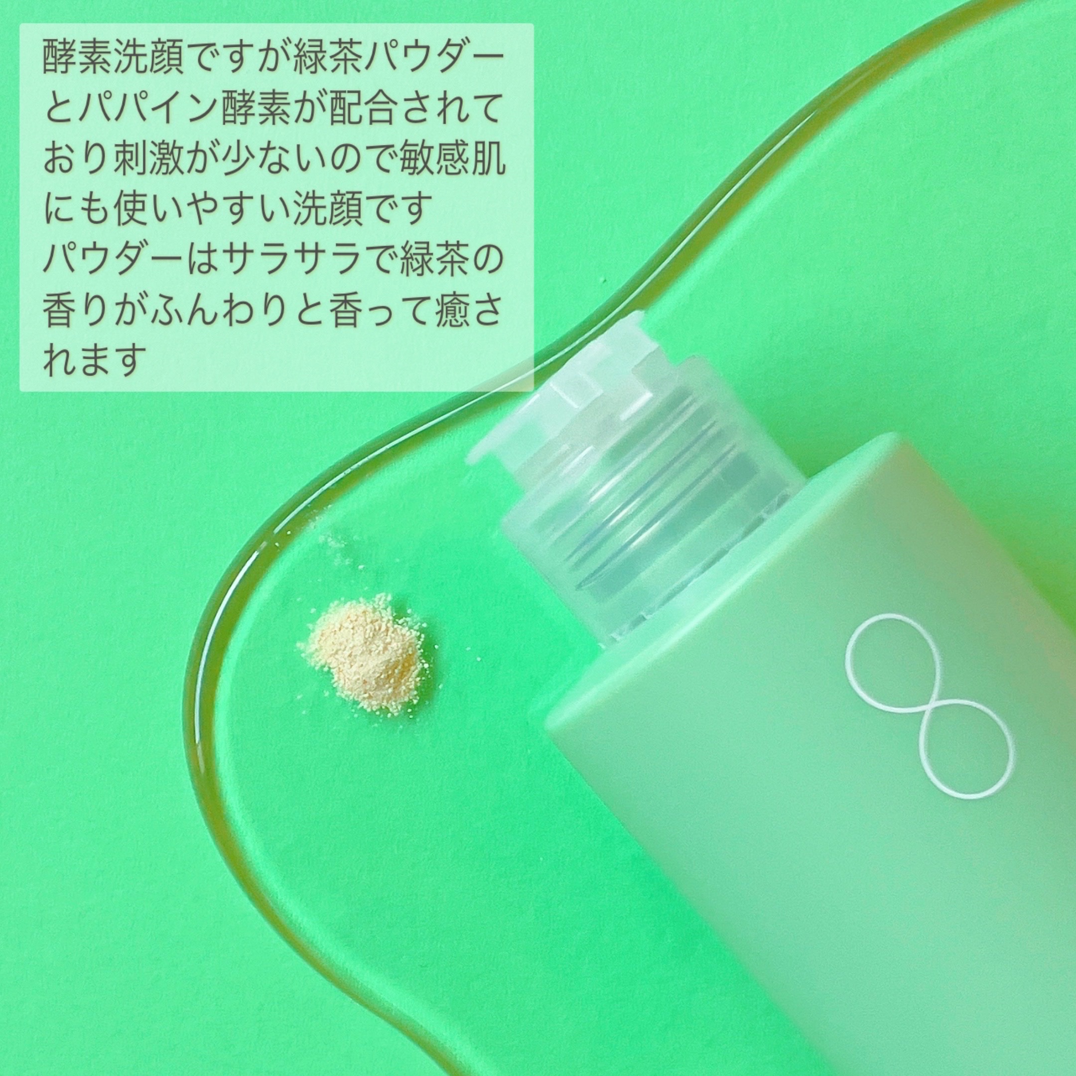 緑茶パウダー&パパイン酵素配合のパウダーウォッシュ。粒子の細かいパウダーで、ふわふわのきめ細かい泡立ち。やさしく洗い上げる事によって、毛穴の黒ずみや余分な老廃物や皮脂をスッキリとオフ。 敏感肌でも安心して使えるお肌に刺激の少ない角質ケアで、洗いあがりはしっとりツルツル。ほのかに香る緑茶の香りにも癒されます。 毎日の洗顔で毛穴ケア出来るのは嬉しいですよね。混合肌の方にもオススメです。