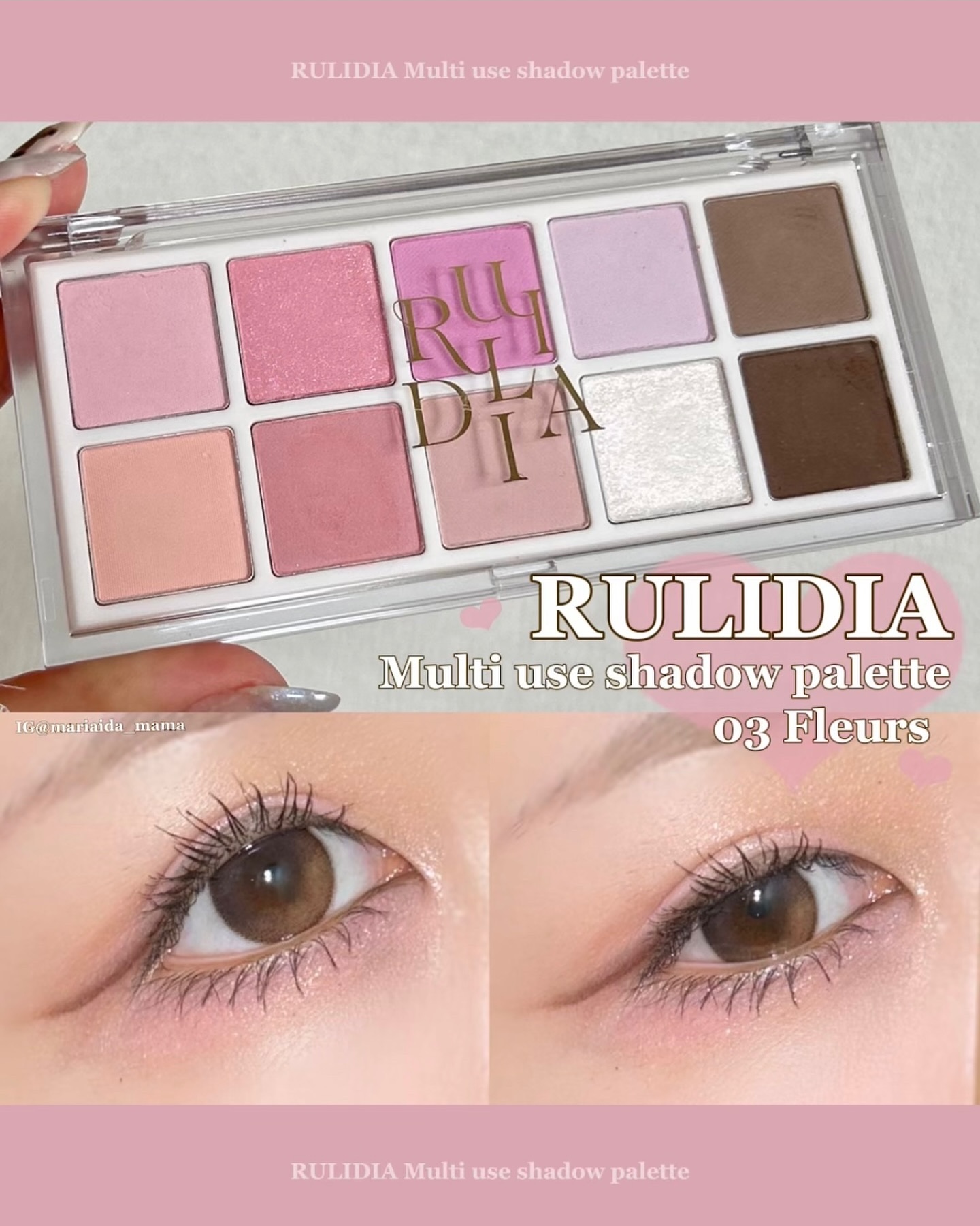 私の我儘を叶えてくれたアイシャドウに出会いました💍🩵 ♥#RULIDIA #マルチユースシャドウパレット 03 フルール 🌸 配色やラメ感がとても絶妙で、チークにも使えるのでふわふわっとした粉質なところも🙆🏻♀️! 夜まで色がくすんだりもしていなかったので優秀だと思っています〜!!