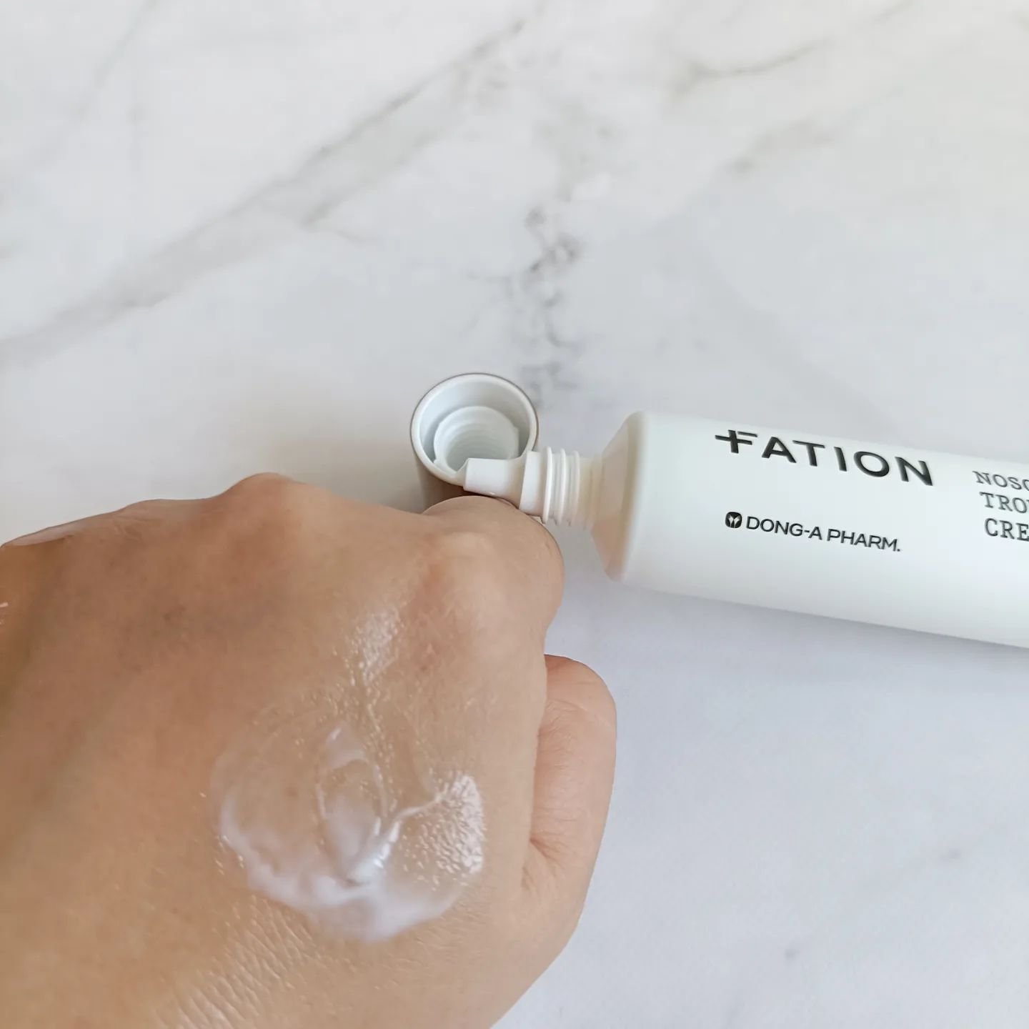 韓国の製薬会社『東亜製薬』で9年間研究開発して作られたノスカナインライン︎︎𓂃🪴 独自開発した有効成分伝達技術【ラピッドサムテクノロジー™】でニキビ、トラブルで敏感になった肌を素早く鎮静させる🍃 ややとろみがあってやさしく肌を包み込んでくれるようなテクスチャーが好き🤲🏻 2度ほど重ね付けするともっちりとした肌に🤍 みずみずしい伸びの良いクリーム🫧 軽くさっぱりしているのにしっかり保湿感がありしっとり肌に🕊 出し口が細いので塗りたいところにピンポイントで塗れるところも良い◎