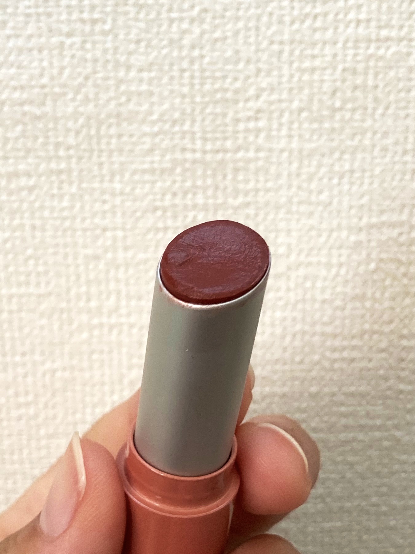 体温で柔らかくなるリップバーム。高音の場所に長時間置かないでほしいとのこと! 05 ヌガーサンドはふわっと溶けるクリームのようなヌガーブラウン 私の肌や唇だとコーラルベージュのような色に発色しました。 色・ツヤ・むりっちり感、どれも派手になりすぎず使いやすかったです🫶 バームだから乾燥しずらくて良かったけど、その分もちはよくないかな?