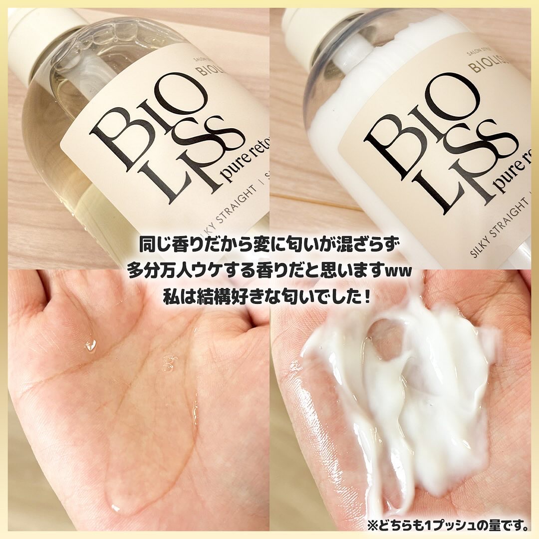 ビオリスは3種類から選べるよ♡ ぱやとぅや/ダメージケアタイプ うるさぁら/ストレートタイプ ぺたふぅわ/エアリータイプ 指通りがさらさらして絡まりのないなめらかな髪に かなりつやつやしてて見た目が綺麗🥰 使うたびやみつきになる ペアー&ミュゲの香り ハーブっぽいグリーン系の爽やかさもあってかなり好みの香り!
