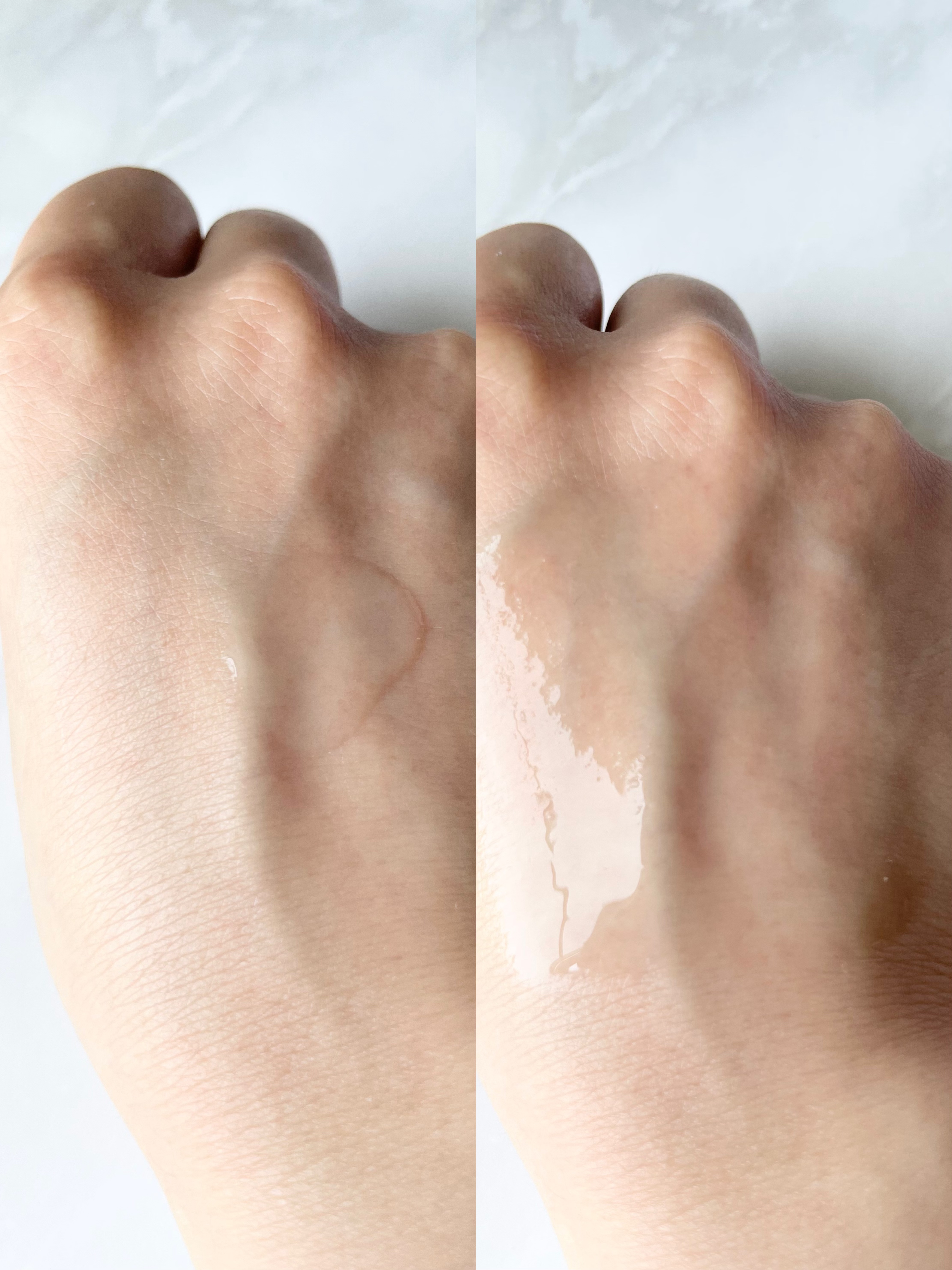 | スルスルっと伸びて、肌になじむとほんのりツヤ感を感じます。 後肌はさらり。 | 詳細を見る | ||