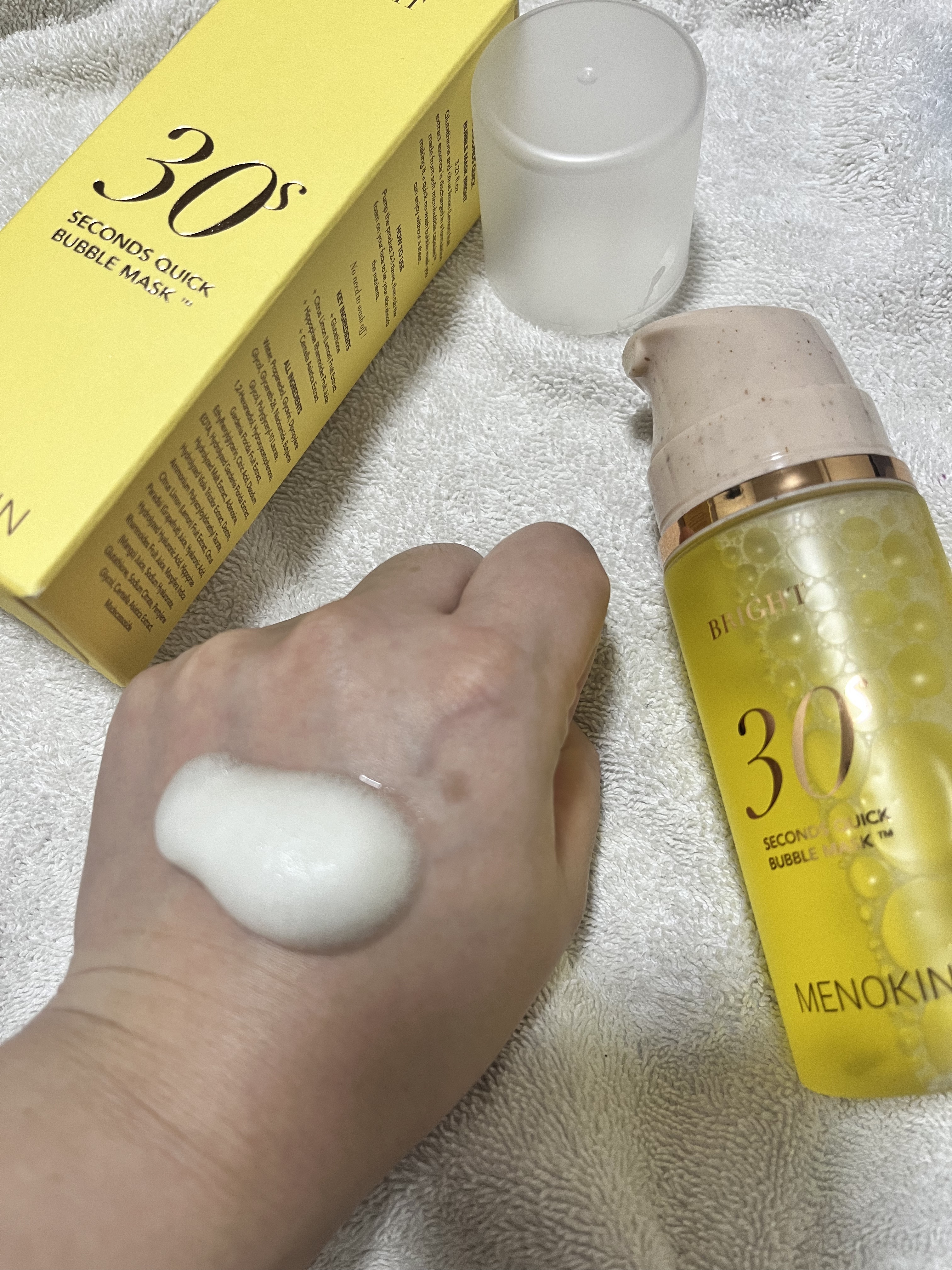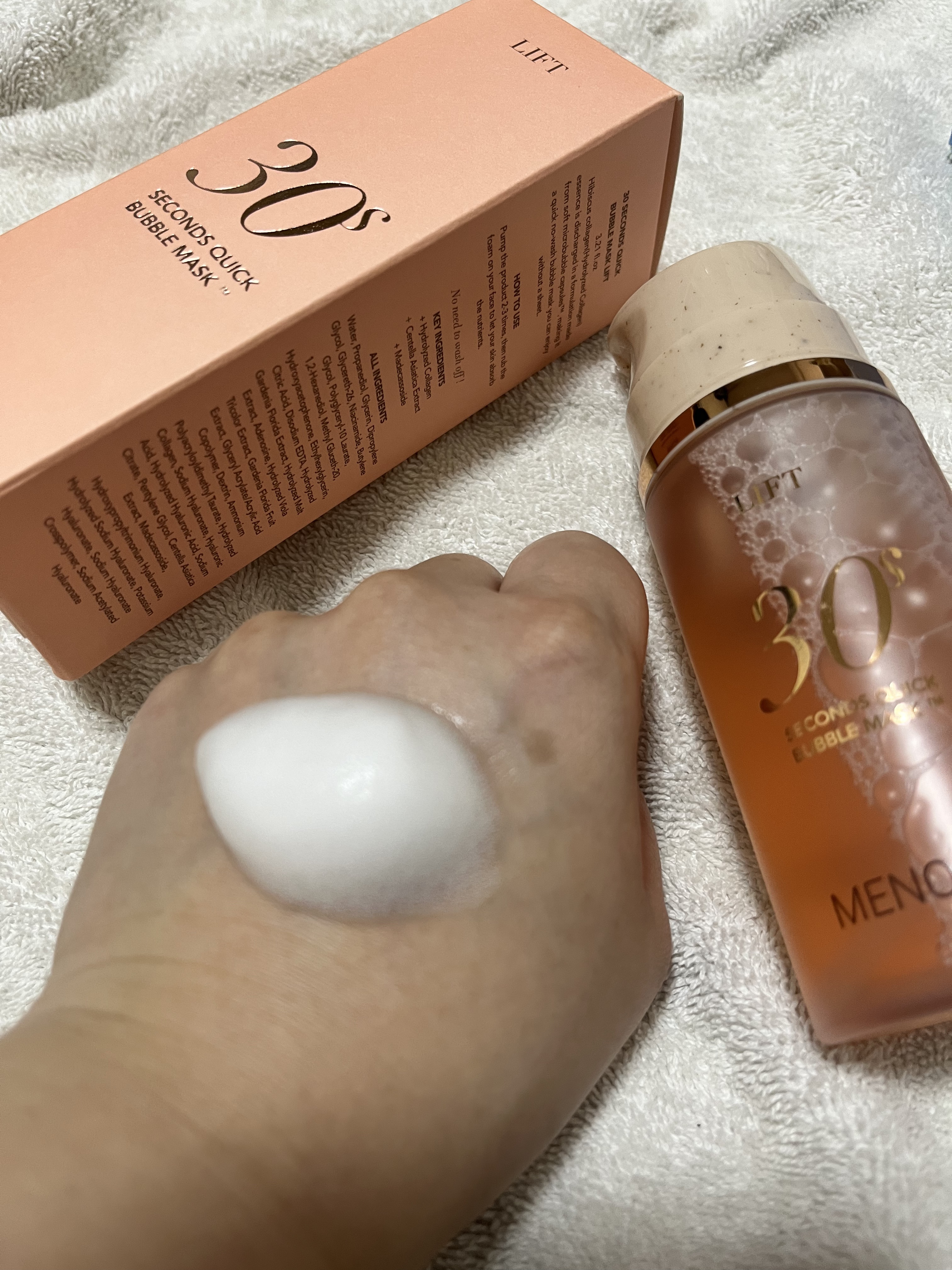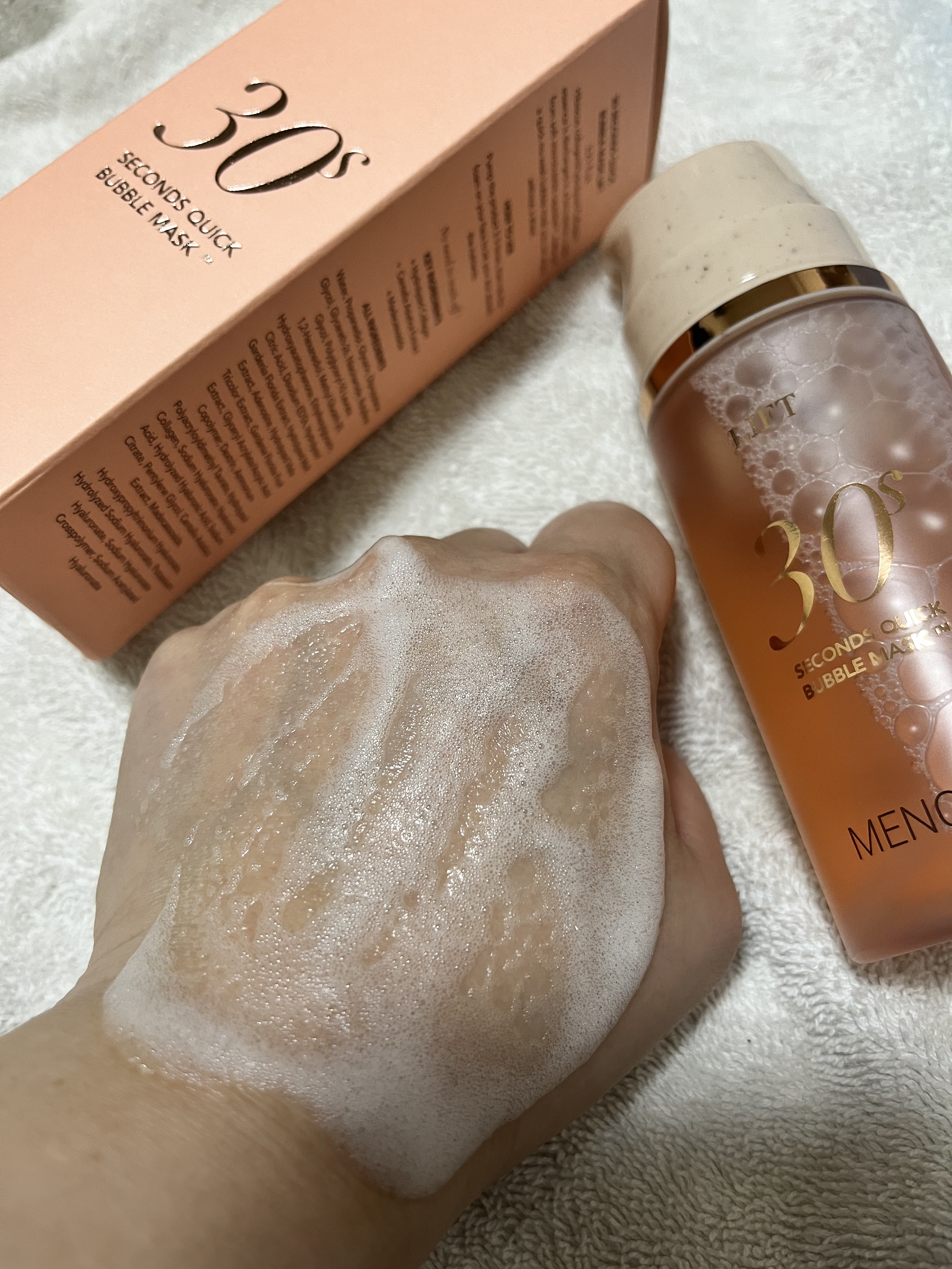 たった30秒で仕上げるクイックバブルパック ✔︎超時短な新感覚泡パック ✔︎これ1本でマスク70回分 ✔︎重ねるほどツヤ肌が叶う マイクロバブルカプセルで美容成分の角質層までの浸透力をアップ✨ ハイビスカスコラーゲンが300ドルトンの低分子化され角質層まで浸透 泡がなくなるまで放置 その間に違う事出来るから忙しい時には大助かり♡