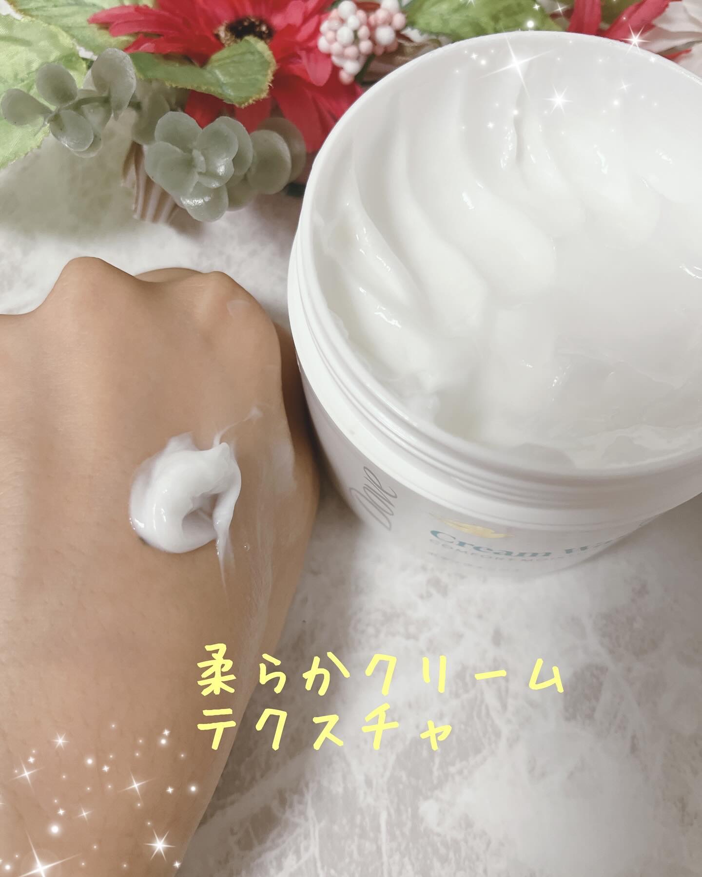 まず、見た目が美しいです✨ 全体的に白で、宝石みたいな感じ💎 飾ってるだけでもわくわくします☺️ 刺激がないこと❣️ 羽田に塗ったときに痒みも出ないし もちろん痛くもないし 刺激が全然ありません😊 今結構気温が上下しているので、お肌の調子も悪いはずなのですが そんな肌にも刺激がなく とてもいいですね✨ テクスチャはさらさら系で 出しすぎると手からこぼれるかも🥹 オイルが含まれています✨