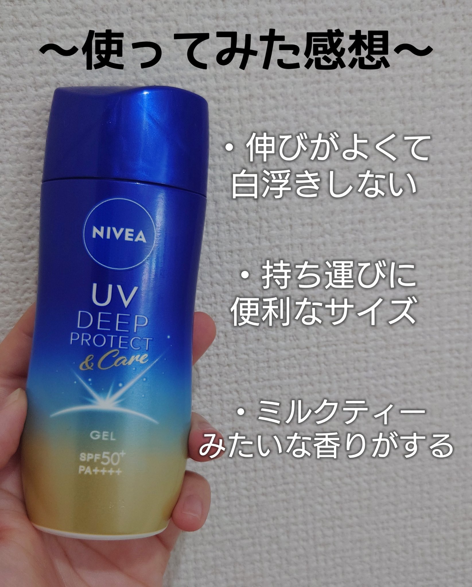 ニベアUV ディープ プロテクト&ケア ジェルが初の大改良‼️‼️‼️‼️✨ 伸びが良いジェルで全身にたっっっぷり仕える 塗り直しが便利なミルクミストが誕生💗 乳白色のUVミルクが瞬時にミスト化 スーパーウォータープルーフ ✔︎︎︎︎せっけんで落とせる(専用クレンジング不要)