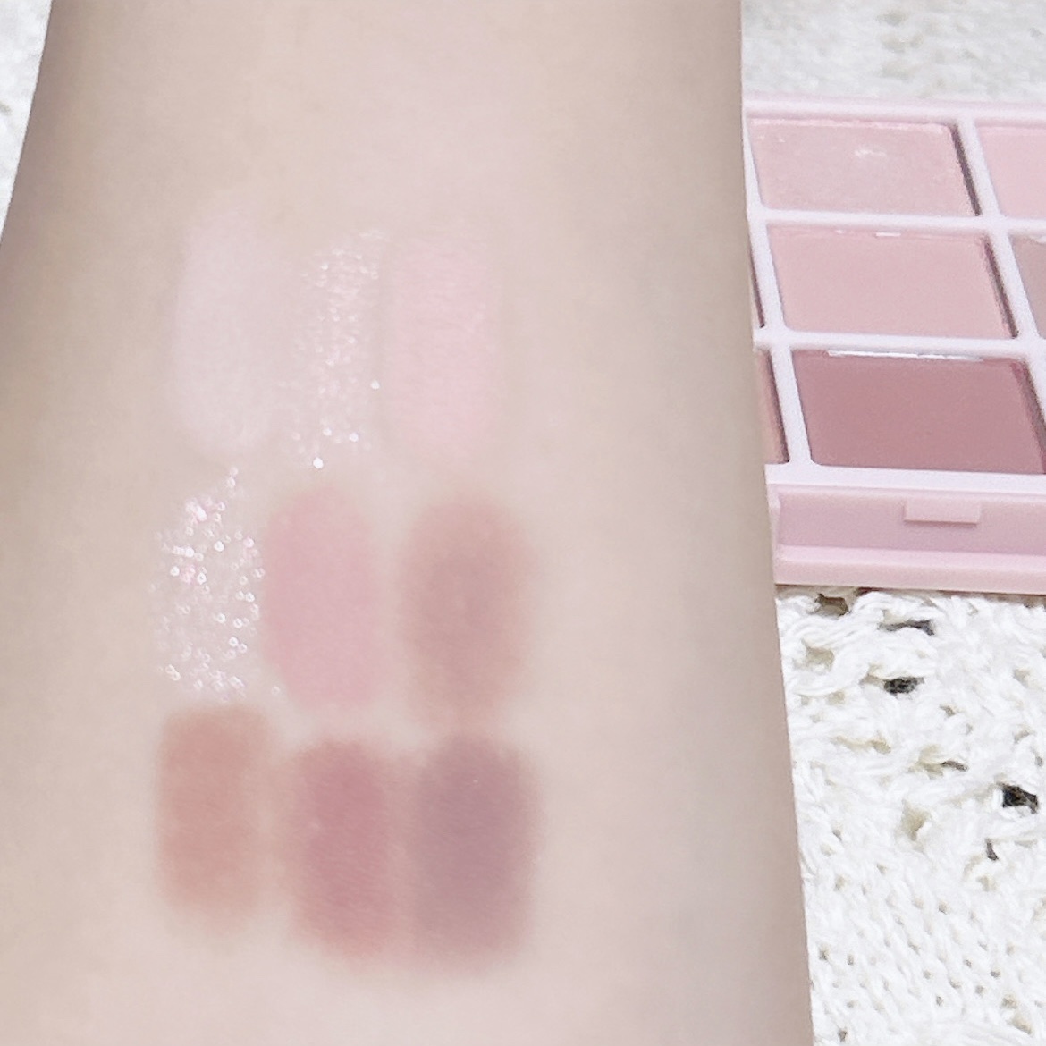 秋を感じるローズカラーがどれも可愛い♡ アイシャドウはマット7色+シマー(ラメ)1色+グリッター1色で、どれも落ち着いたミュートカラーでデイリー使いしやすそうな印象 チークはミルクっぽさを残しつつ、ローズカラーを混ぜたマットカラー4色で、公式写真よりはピンクっぽさを感じる印象 おまけでデュアルシャドウとミニグリッターがついてきました! ニュアンスを変えるのに良さそうです☆*. ゚