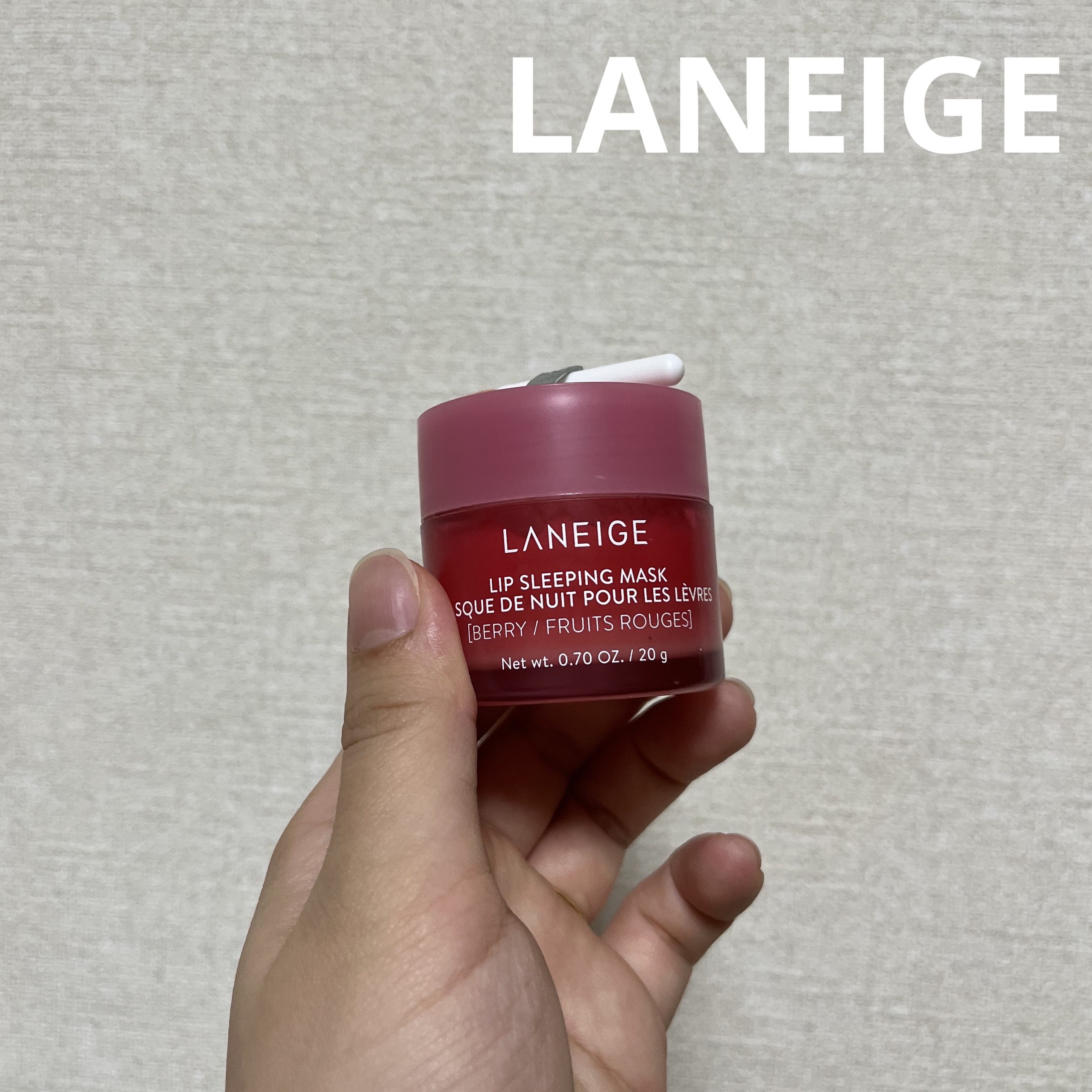 - 寝ている間にケアしてふっくらぷるぷるにうるおった唇へ。 2015年の初代発売以降、世界で2秒に1個売れている*¹LANEIGE大ヒットシリーズ *¹ 2024年グローバル販売実績 1.角質にアプローチするBerryFruitComplex (ベリーフルーツコンプレックス)*²が、 寝ている間に気になる乾燥や角質にうるおいを与え、つやのあるふっくらとうるおった唇に仕上げます。 *²ザクロ果実エキス、ブドウ果実エキス、ラズベリー果実エキス 2.ココナッツオイル(ヤシ油)を配合で、うるおいをあたえ睡眠中の乾燥を防ぎます。 3.今夜はどんな気分?5つのフレーバーから選べるワクワク感。 ■テクスチャー:やさしく馴染むなめらかなバームタイプ ■アレルギーテスト済み*³ *³全ての方にアレルギーが起こらないということではありません。 ■使用方法 寝る前に唇にたっぷり塗り、そのままお休みください。 翌朝、軽くティッシュオフします。付属のスパチュラで塗ることで、より唇の角質に馴染みやすくなります。 日中のリップトリートメントにも使用できます。