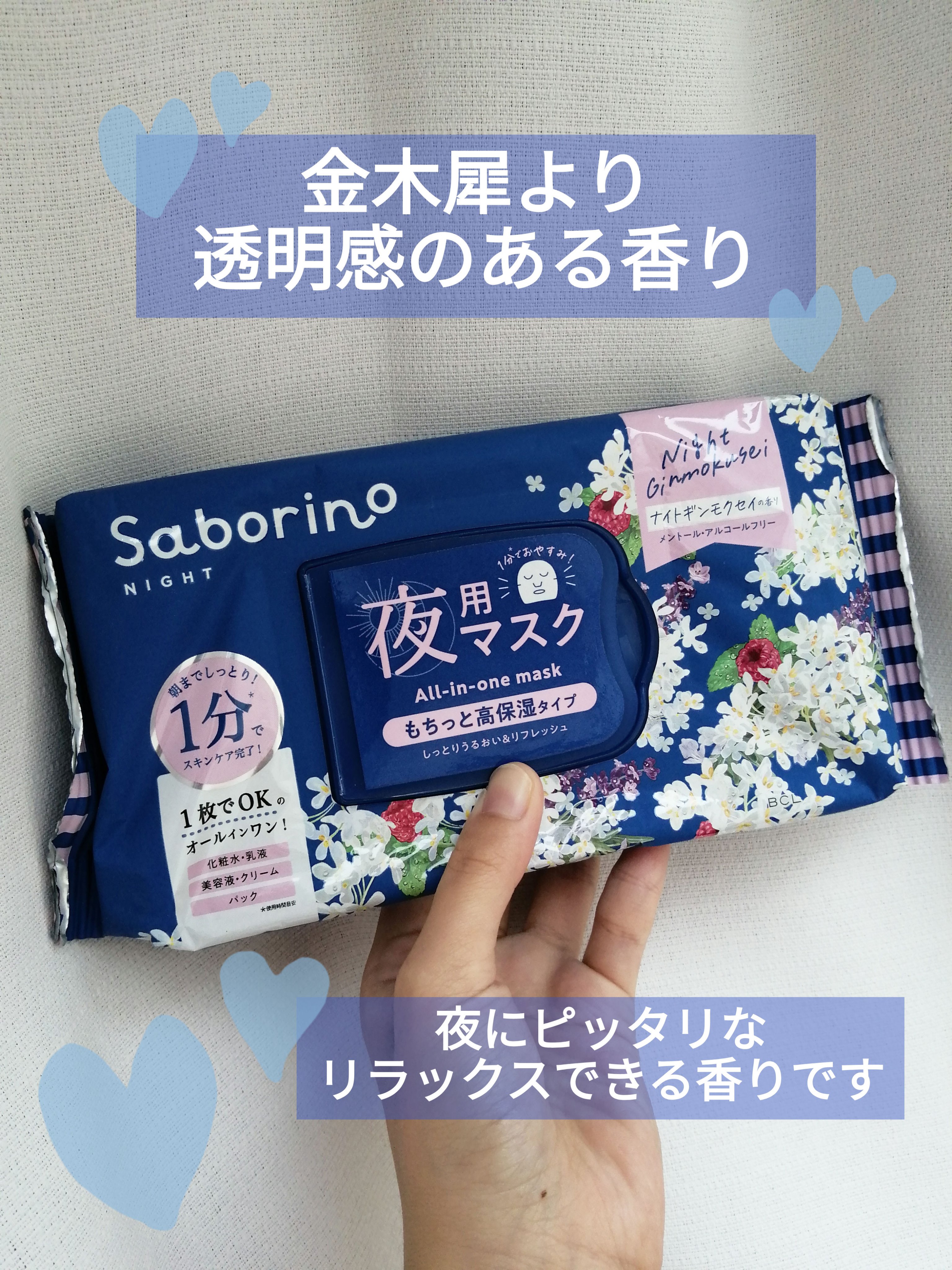 金木犀の香りってなんとも言えない優しい香りがしますよね…良きです💗 朝から金木犀の香りでケアできるなんて幸せすぎる!! 夜用フェイスマスクからは銀木犀の香りが登場✨️ 金木犀よりほのかに透明感のある香りなので、金木犀の香りが苦手な方でも使いやすいと感じました!! サボリーノマスクはさっぱり系やしっとり系、高保湿タイプなど、様々なタイプから選べるのも推しポイント👍️