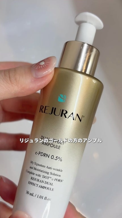 ラグジュアリー感溢れるゴールドのパケ✨✨REJURAN®DUALEFFECTAMPOULEエイジングケア*美容液“リジュランデュアルエフェクトアンプル”は肌のたるみ、ハリが気になる方にオススメとのこと濃厚&リッチなテクスチャーでシロップのよう...