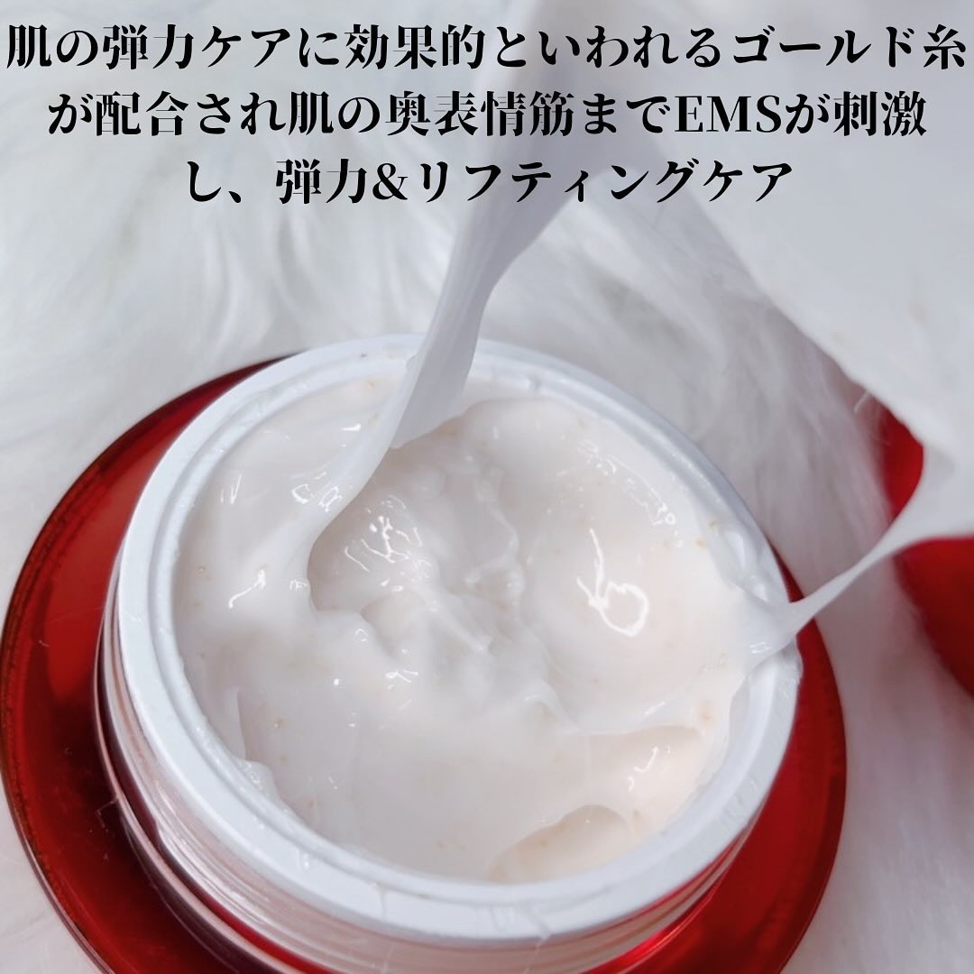 中周波EMSモードとゴールド糸のクリームのダブル効果でコラーゲンの生成を促進し、肌の内部から弾力を改善、本格的にリフトアップできる美顔器🩷 クリームはお肌の隙間に溶け込むように糸状なんだけど納豆みたいにめっちゃ伸びる!!ネバネバではあるけど切れはいい不思議なテクスチャー。 振動モードは、クリームの吸収力を高めて弾力を強化してくれる。こちらは痛みはないけど強めの振動で最初ビックリした😳