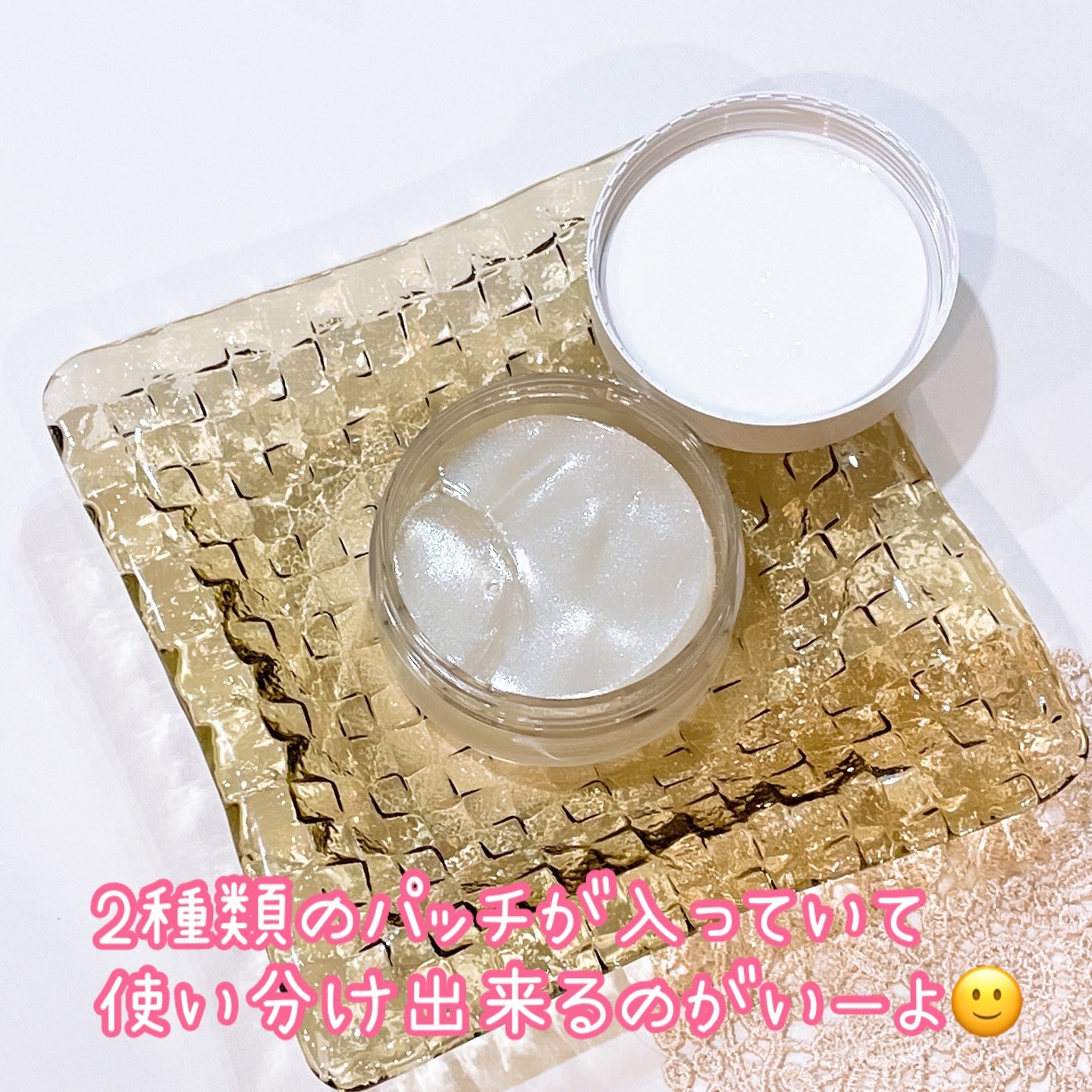 高純度99%のグルタチオンとナイアシンアミドが配合されていて、美白(*1)、くすみ(*2)、エイジングケア(*3)に特化したアイパッチなんです🫶✨ ぷるぷるのゼリー状のハイドロゲルパッチで、大きなサイズと小さいサイズの2種類入り。 贅沢な目元ケアにぴったり!パック中はお肌に密着してくれて、ながら美容にもぴったり。