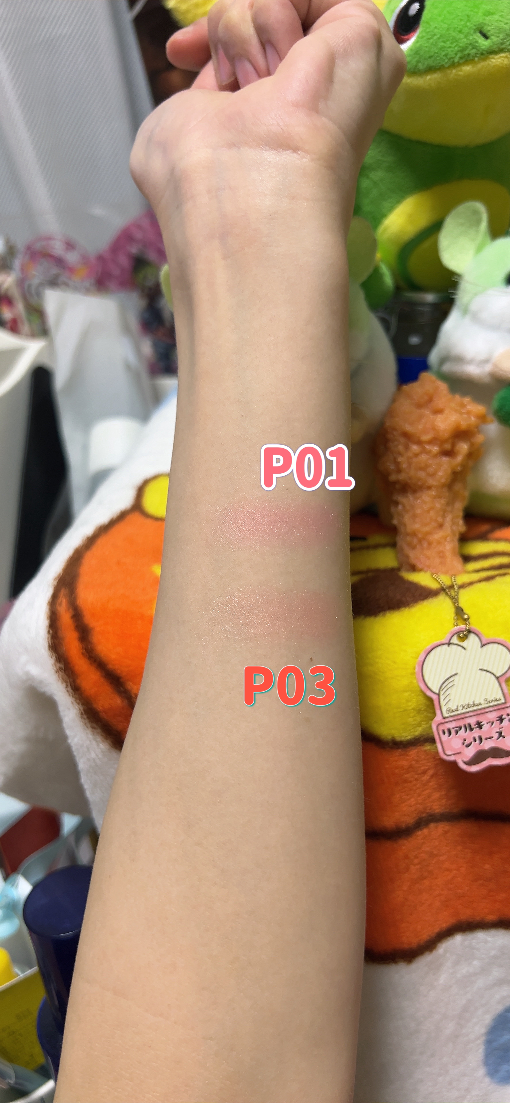 - <P01 パワフルピンク> タルク、リンゴ酸ジイソステアリル、合成フルオロフロゴパイト、トリエチルヘキサノイン、イソステアリン酸水添ヒマシ油、ポリグリセリル-3ポリジメチルシロキシエチルジメチコン、ラウリン酸亜鉛、メチルパラベン、酸化スズ、トコフェロール、オリーブ果実油、カニナバラ果実油、セラミドNP、シア脂、ホホバ種子油、マイカ、グンジョウ、酸化チタン、酸化鉄、赤202、赤226 <P02 リトルシャイピンク> タルク、リンゴ酸ジイソステアリル、トリエチルヘキサノイン、イソステアリン酸水添ヒマシ油、ポリグリセリル-3ポリジメチルシロキシエチルジメチコン、ラウリン酸亜鉛、メチルパラベン、トコフェロール、オリーブ果実油、カニナバラ果実油、セラミドNP、シア脂、ホホバ種子油、マイカ、グンジョウ、酸化チタン、水酸化Al、酸化鉄、赤226 <P03 チアフルピーチ> タルク、リンゴ酸ジイソステアリル、トリエチルヘキサノイン、イソステアリン酸水添ヒマシ油、ポリグリセリル-3ポリジメチルシロキシエチルジメチコン、ラウリン酸亜鉛、合成フルオロフロゴパイト、メチルパラベン、トコフェロール、オリーブ果実油、カニナバラ果実油、セラミドNP、シア脂、ホホバ種子油、酸化スズ、マイカ、酸化チタン、酸化鉄、赤226 <P04 クレバーベージュ> タルク、リンゴ酸ジイソステアリル、トリエチルヘキサノイン、イソステアリン酸水添ヒマシ油、ポリグリセリル-3ポリジメチルシロキシエチルジメチコン、ラウリン酸亜鉛、メチルパラベン、トコフェロール、オリーブ果実油、カニナバラ果実油、セラミドNP、シア脂、ホホバ種子油、マイカ、グンジョウ、酸化チタン、酸化鉄、赤226 <P05 クラッシーモーヴピンク> タルク、リンゴ酸ジイソステアリル、トリエチルヘキサノイン、イソステアリン酸水添ヒマシ油、ポリグリセリル-3ポリジメチルシロキシエチルジメチコン、ラウリン酸亜鉛、メチルパラベン、トコフェロール、オリーブ果実油、カニナバラ果実油、セラミドNP、シア脂、ホホバ種子油、マイカ、酸化鉄、酸化チタン、水酸化Al、グンジョウ、赤226 <P40thx キューティーベリー> タルク、リンゴ酸ジイソステアリル、トリエチルヘキサノイン、イソステアリン酸水添ヒマシ油、合成フルオロフロゴパイト、ポリグリセリル-3ポリジメチルシロキシエチルジメチコン、ラウリン酸亜鉛、メチルパラベン、トコフェロール、オリーブ果実油、カニナバラ果実油、セラミドNP、シア脂、ホホバ種子油、マイカ、酸化チタン、赤226、グンジョウ、酸化鉄、水酸化Al