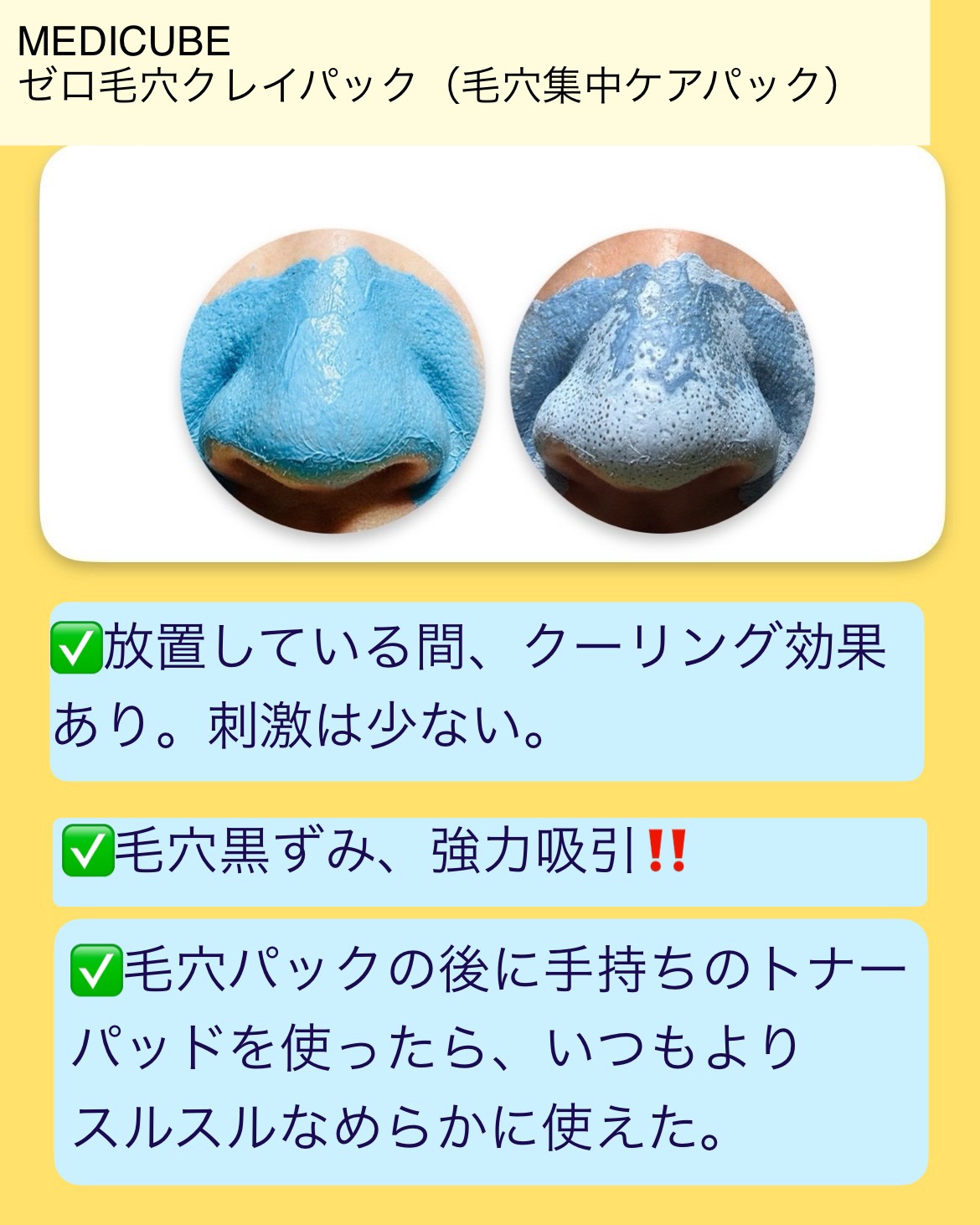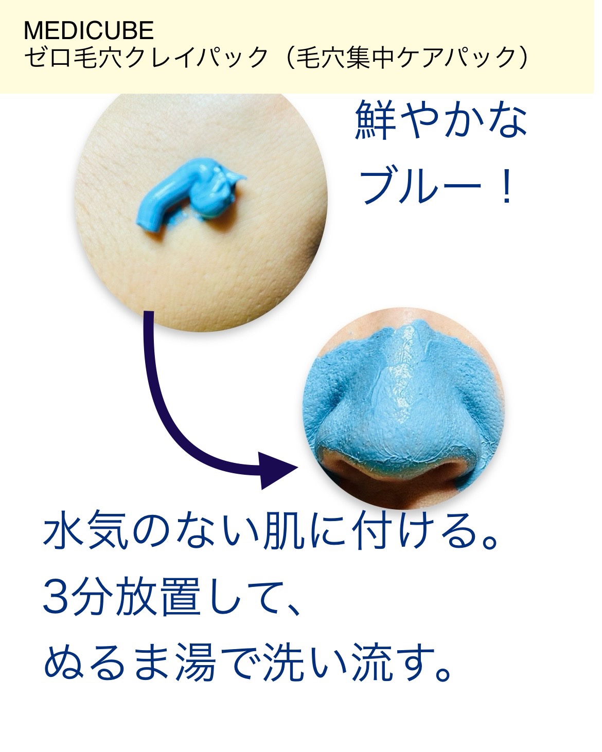 青のクレイパックで毛穴ケアMEDICUBEゼロ毛穴クレイパック1,980円(税込)3分で、毛穴の黒ずみに強力吸着して毛穴をケアクリームが乾燥していくと黒ずみの部分がポツポツと浮き出てくる青色だからアバターパックって言われてるんだよ!朝の洗顔前...