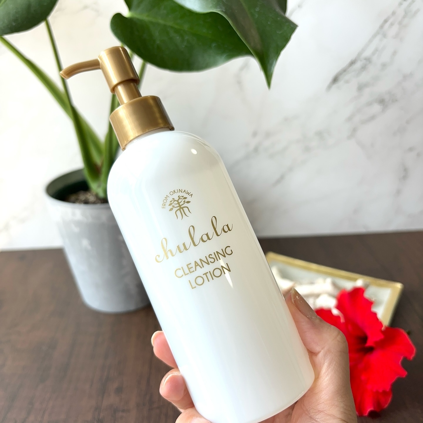 振って使うオイル層とウォーター層の2層式ハイブリッドクレンジング🌟 パパイン酵素で古くなった角質と汚れを分解。ウルトラファインナノバブル水の毛穴よりも小さい1μm以下の気泡が毛穴の汚れや角質を浮かしてくれるんだって✨ 沖縄産サンゴ水を使用。サンゴにより浄化されたサンゴ水には、カルシウムイオン(Ca2+)が含まれていて、お肌のターンオーバーをサポート🎵 コットンで拭き取るだけ💓ダブル洗顔や洗い流しは不要です。ちゅららのクレンジングならコットンでスルンと拭き取るだけなので、リビングでクレンジングできちゃうんだよね。